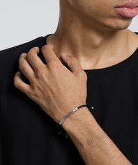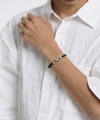 스틸 포인트 트위스티드 레더 팔찌 블랙