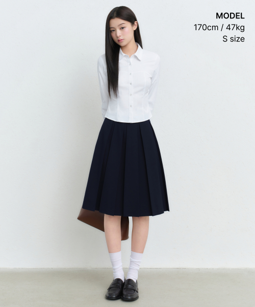 우먼즈 볼드 플리츠 니 렝스 스커트 [네이비]