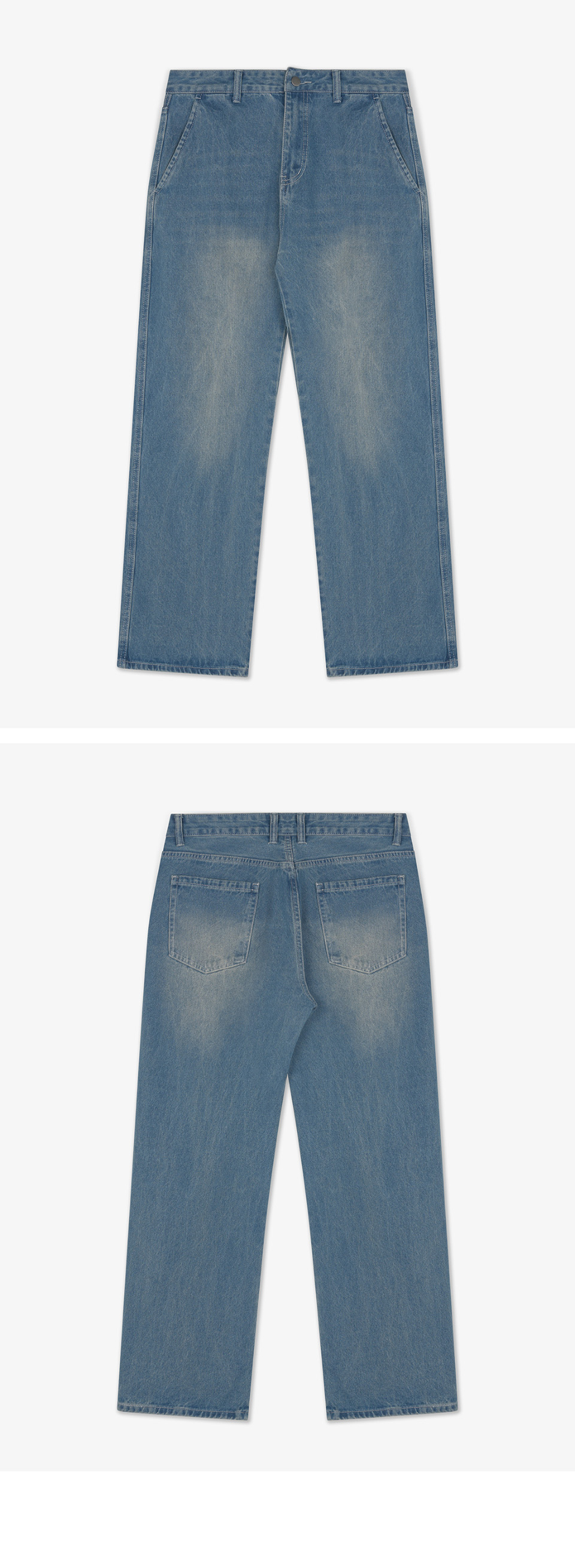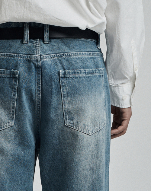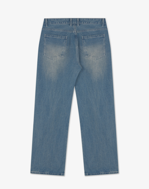 뒷밴딩 무지 워싱 와이드 데님 팬츠[인디고블루]
