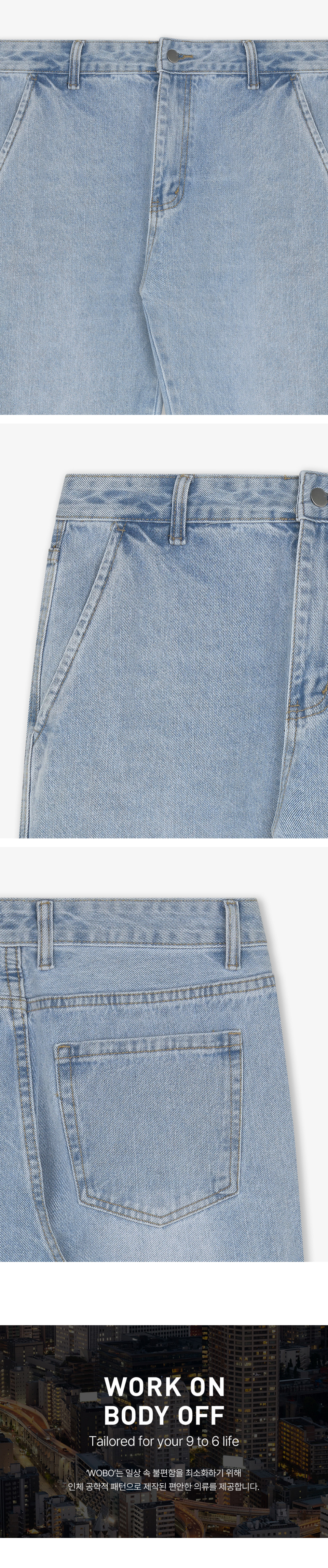 워크온바디오프(WORK ON BODY OFF)는 일상 속 불편함을 최소화 시키고자 탄생한 '오피스 워크 웨어' 브랜드입니다.