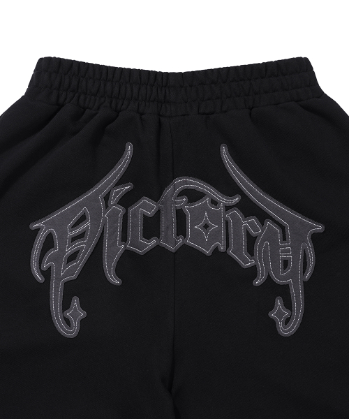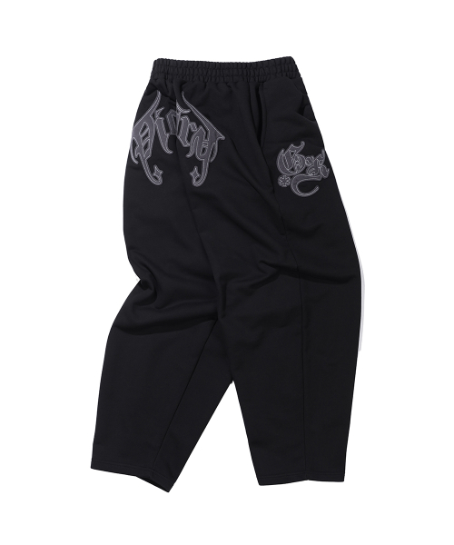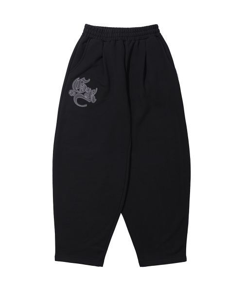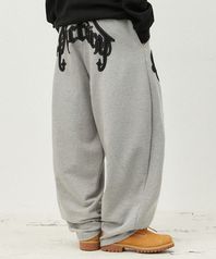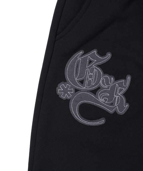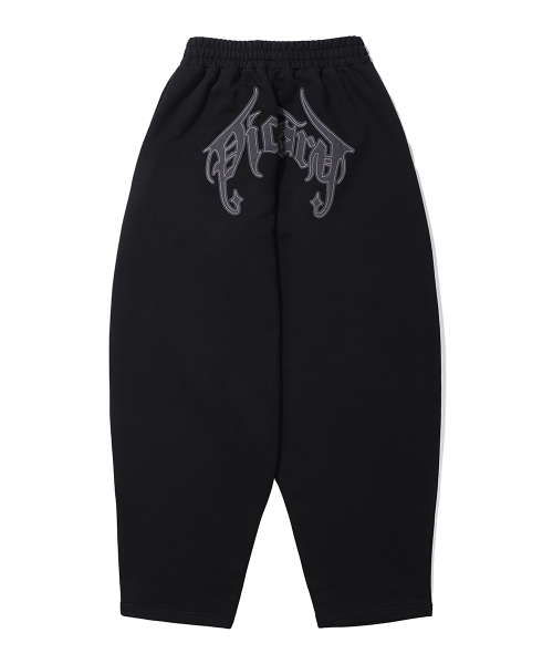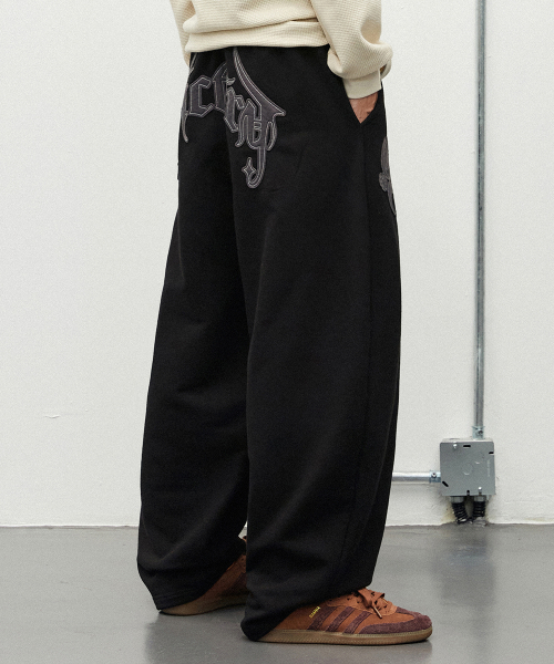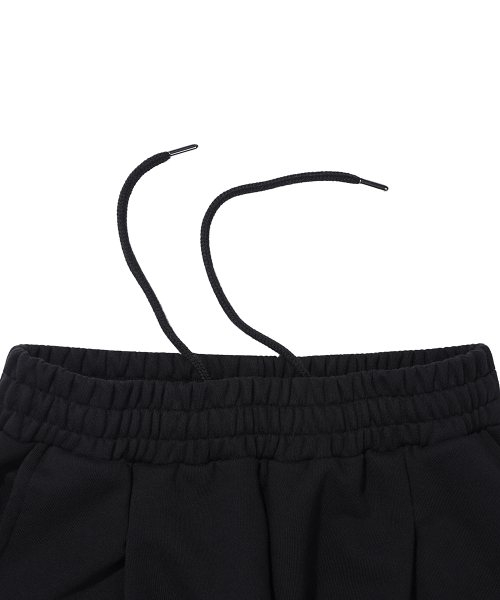 체크 웨이스트 레이어드 패치 포인트 와이드 트레이닝 코튼 팬츠 [블랙]