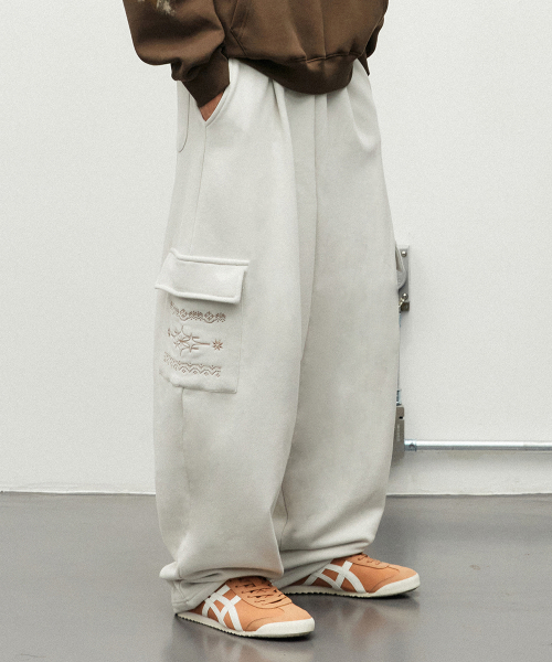 노스타 원턱 벌룬 스웨트 카고팬츠 오프화이트