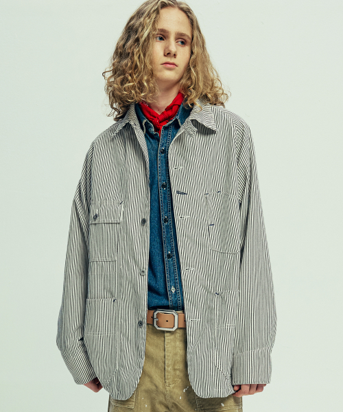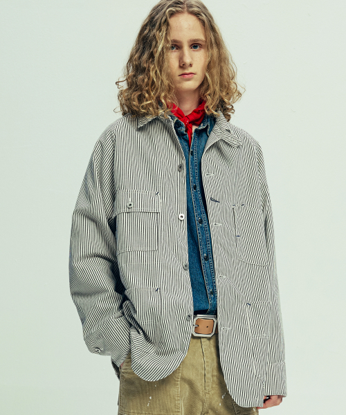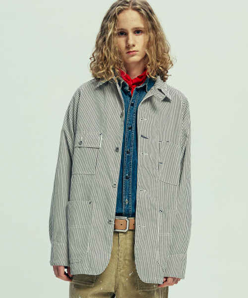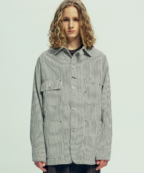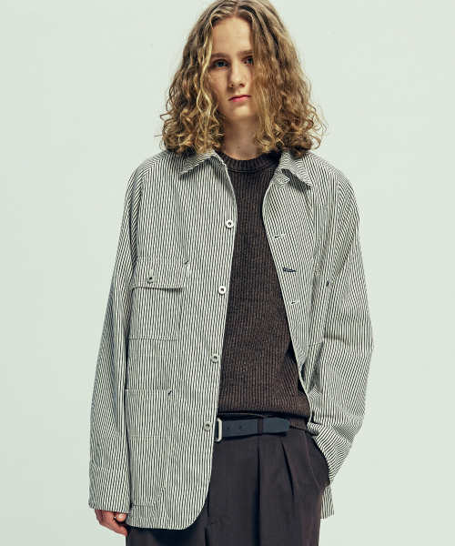 XAU 히코리 초어 자켓 아이보리 스트라이프