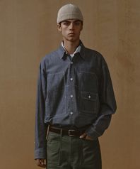 오버사이즈 샴브레이 유틸리티 워크 셔츠 [블루]