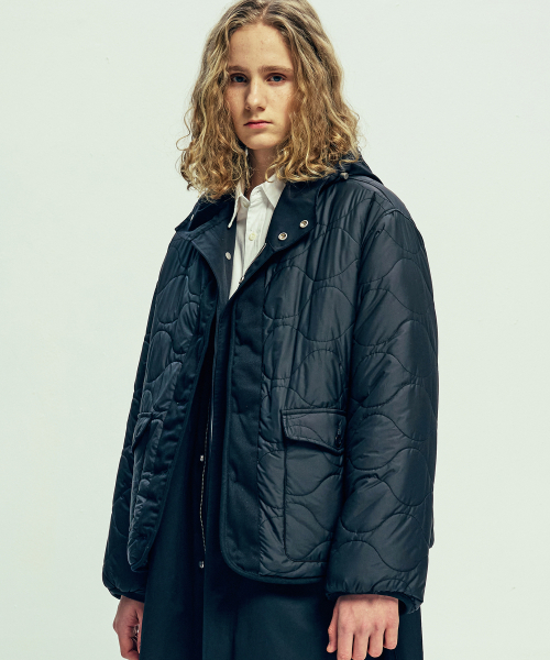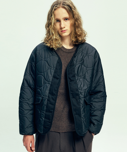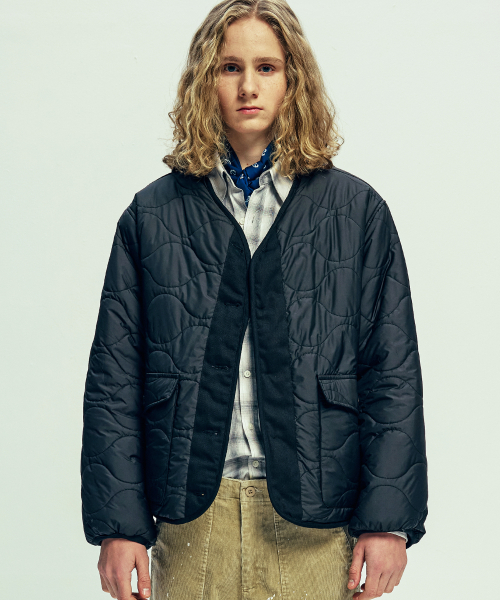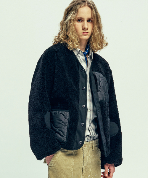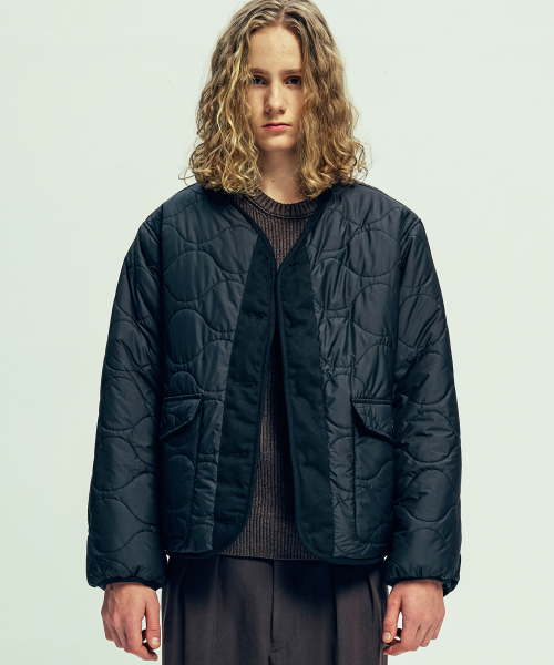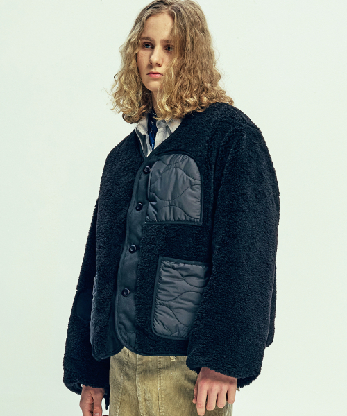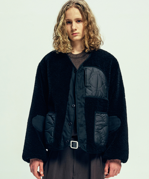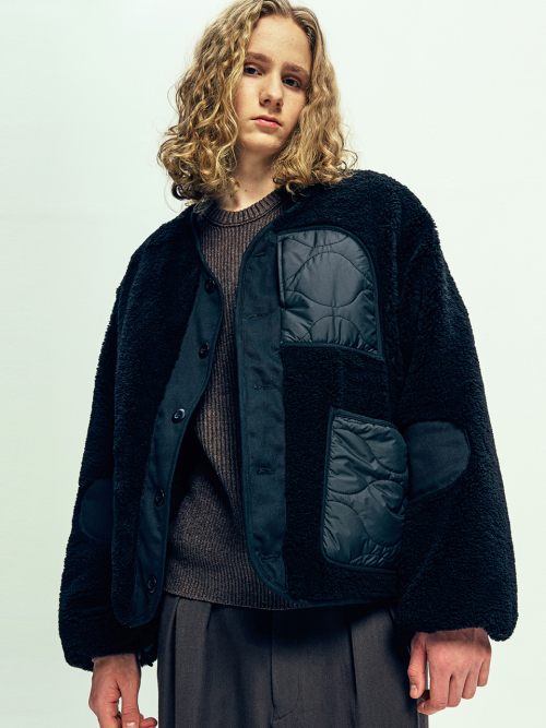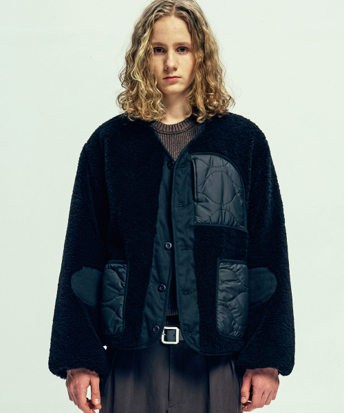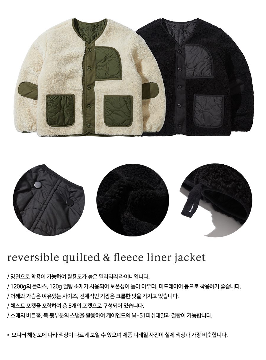 리버시블 퀼티드 & 플리스 라이너 자켓 블랙