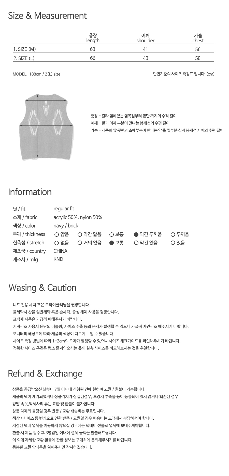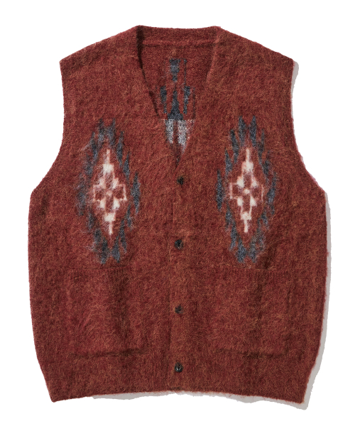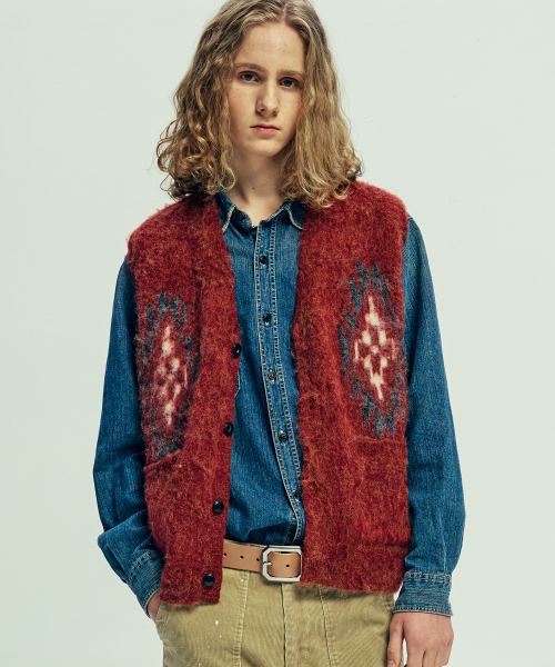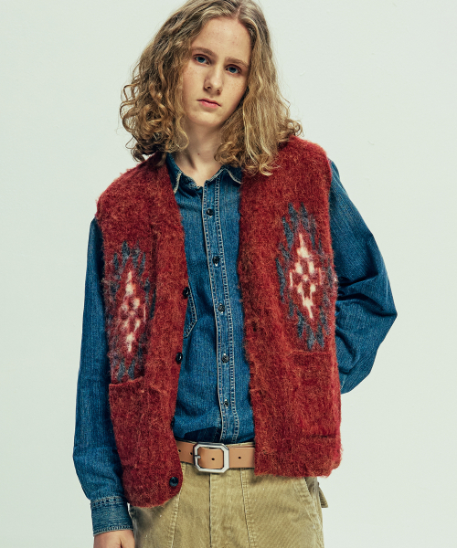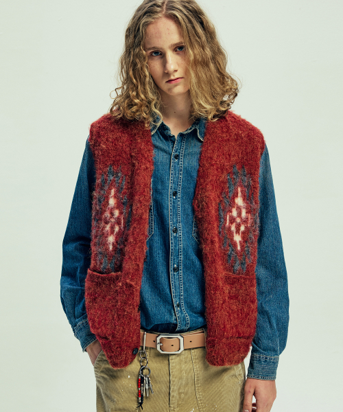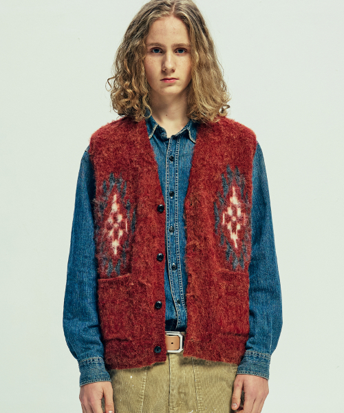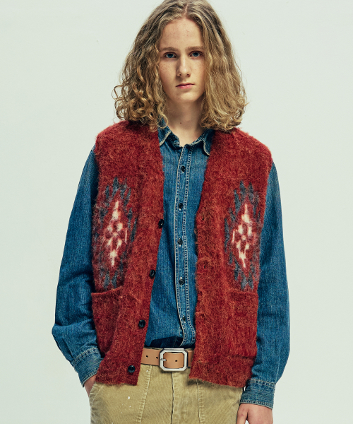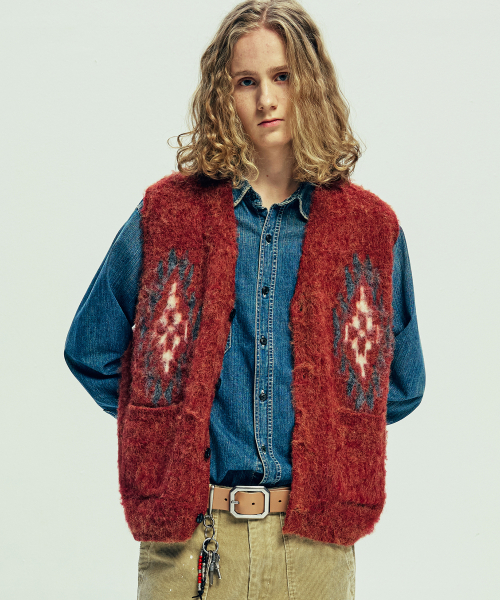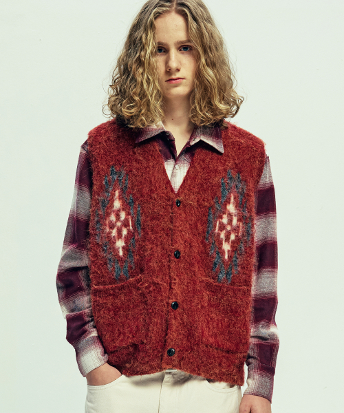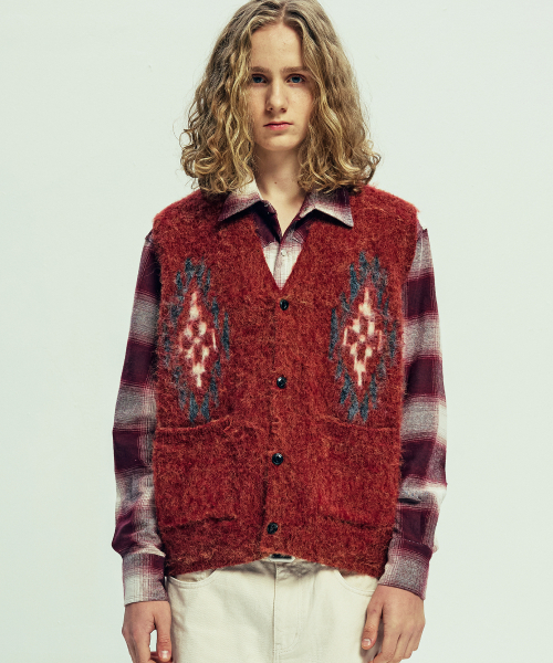 치마요 패턴 브러쉬 니트 베스트 브릭