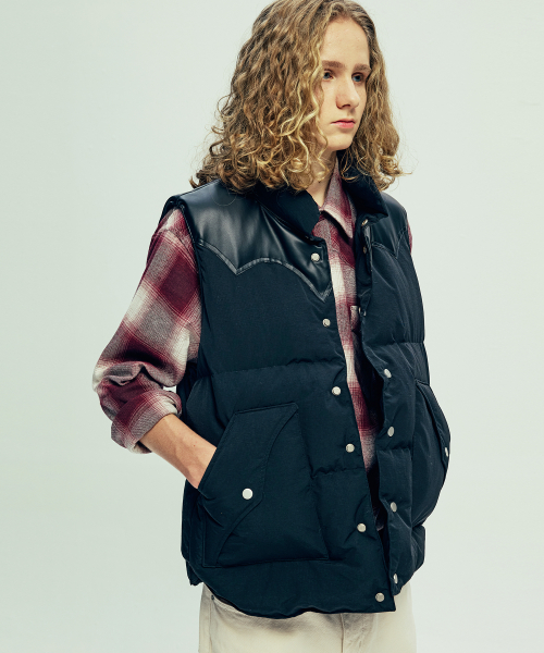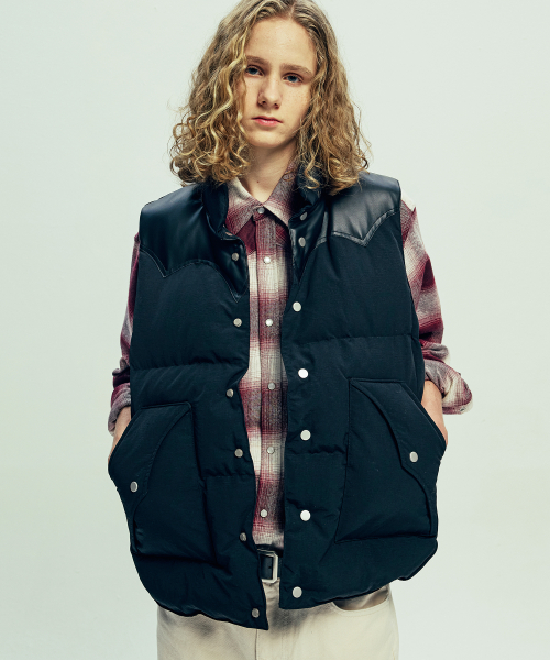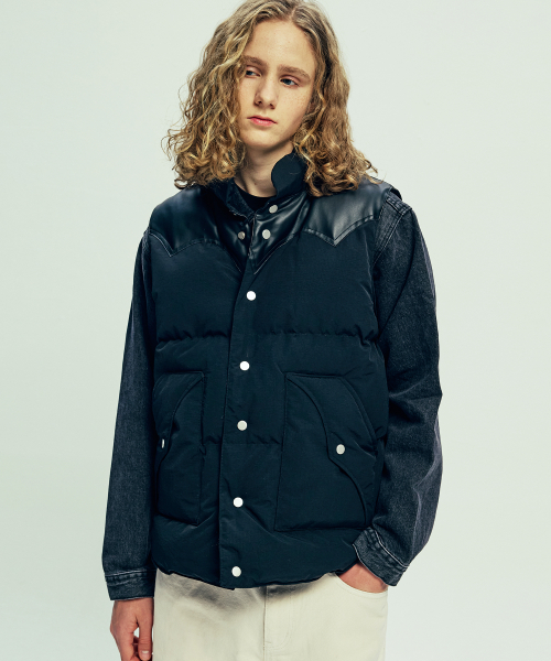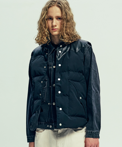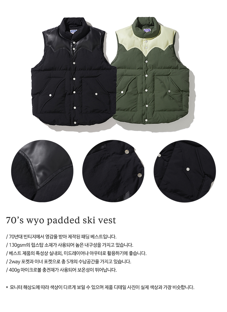 70s WYO 패디드 스키 베스트 블랙