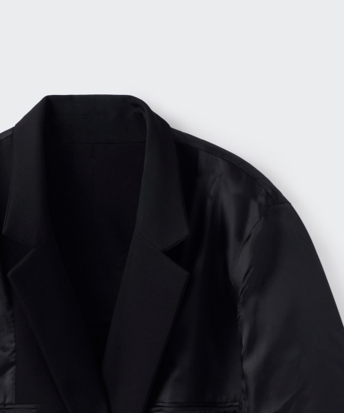 우먼즈 울 블렌드 멜톤 오버 숄더 블레이저 [블랙]