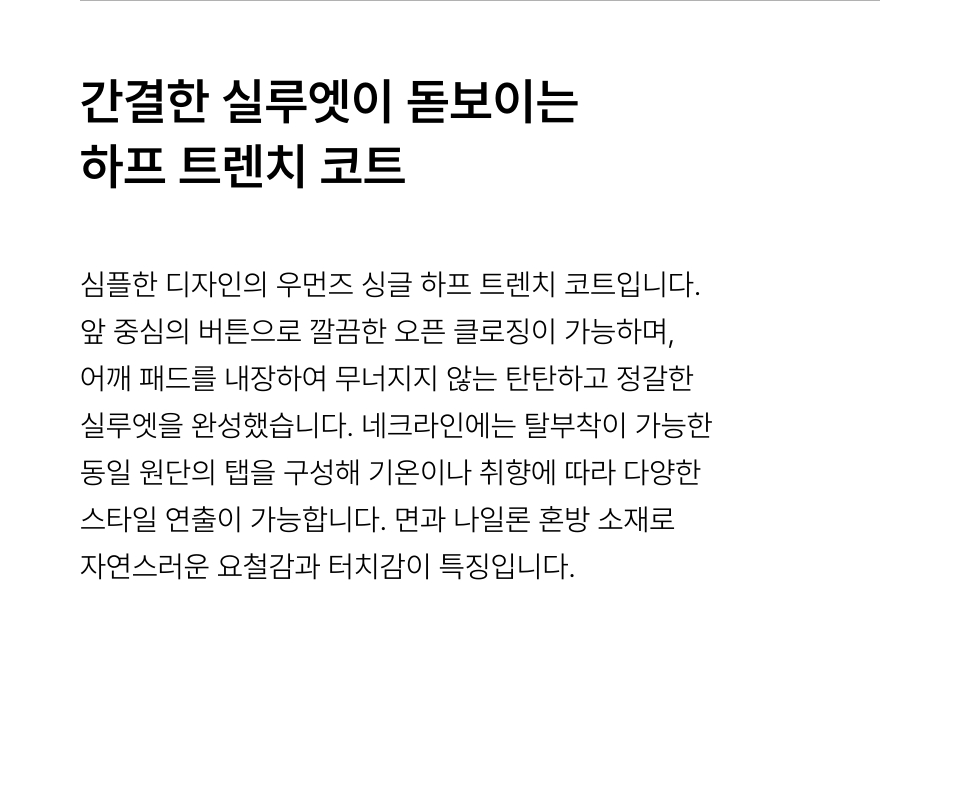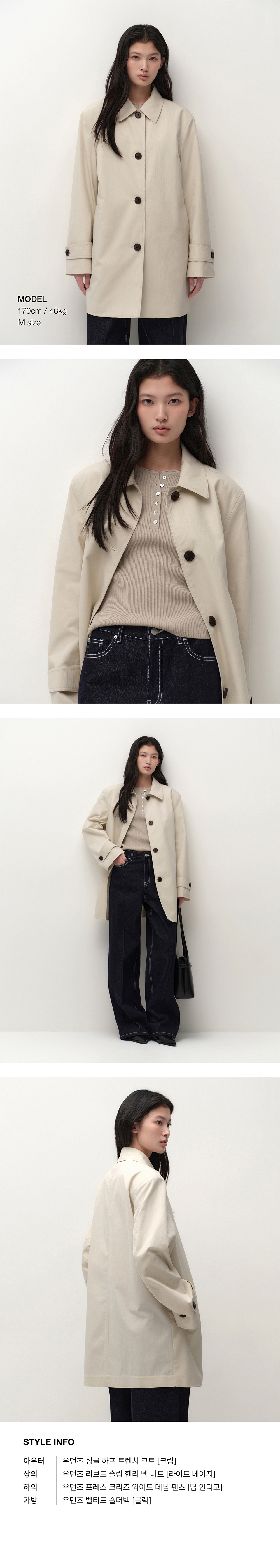우먼즈 싱글 하프 트렌치 코트 [크림]