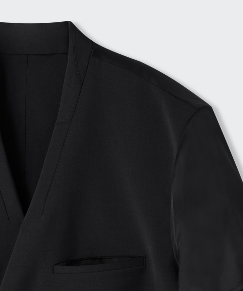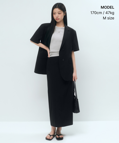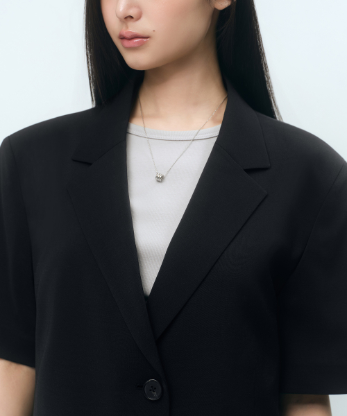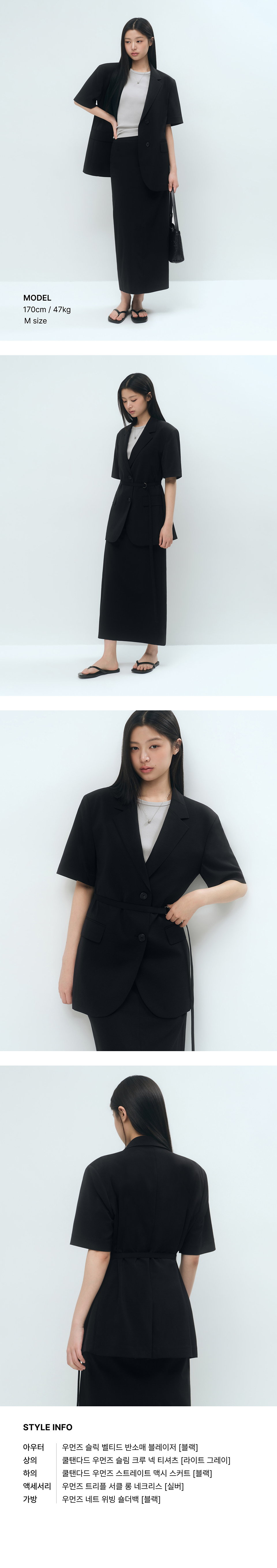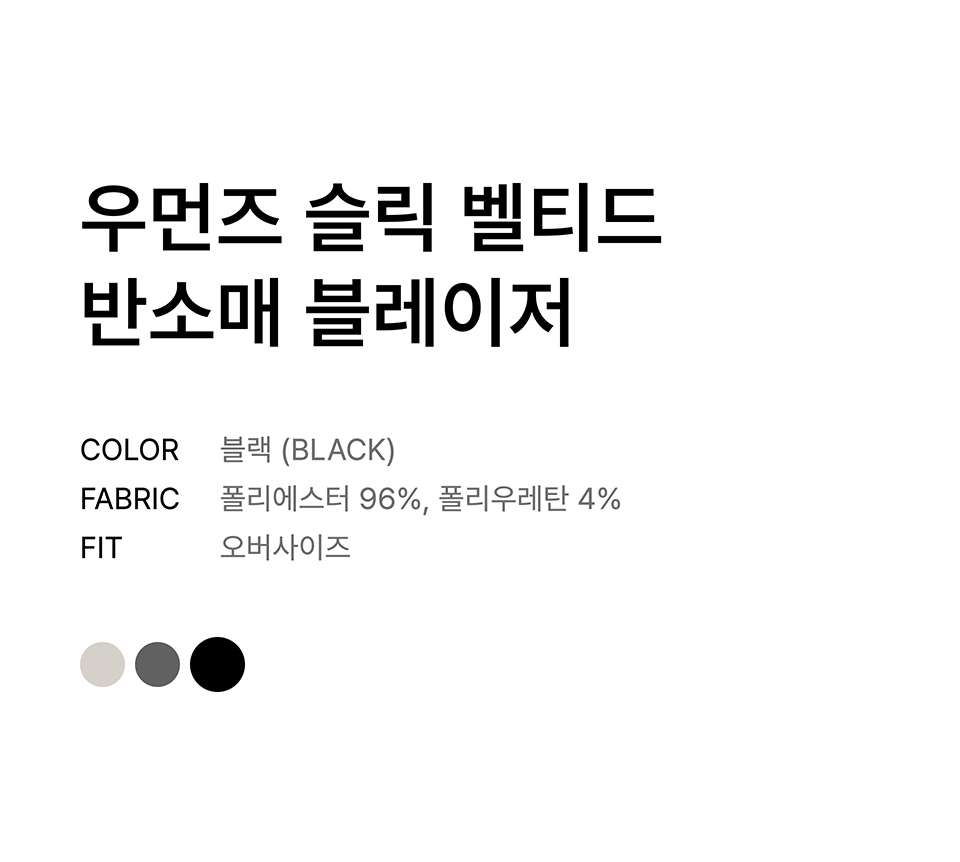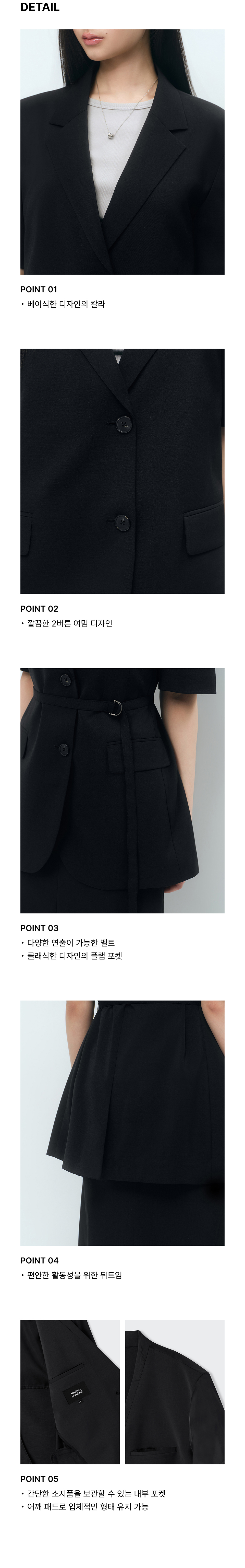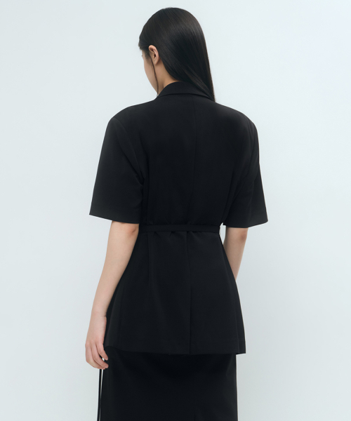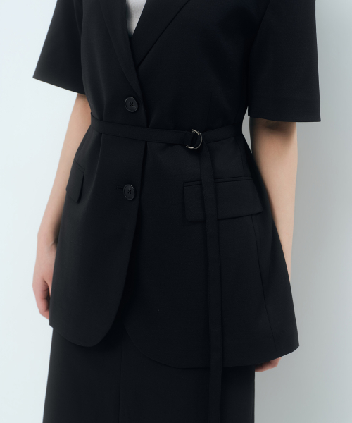 우먼즈 슬릭 벨티드 반소매 블레이저 [블랙]