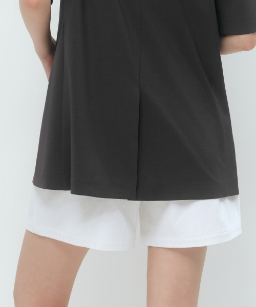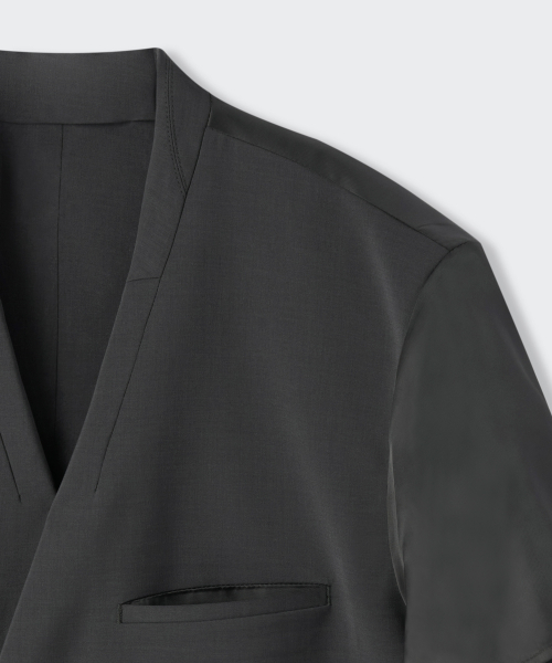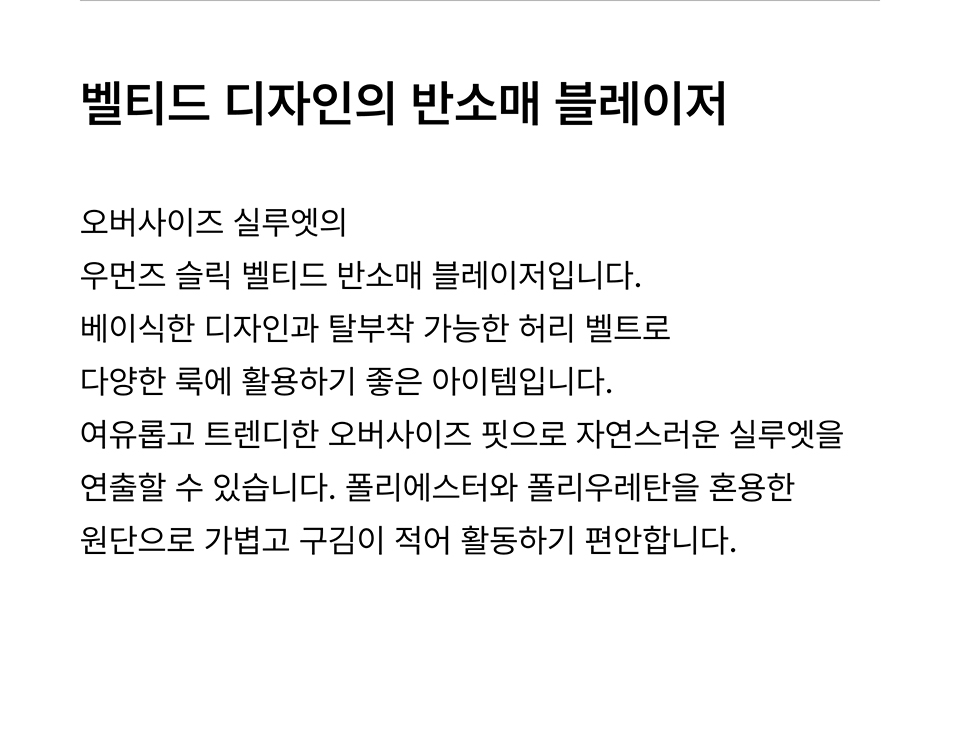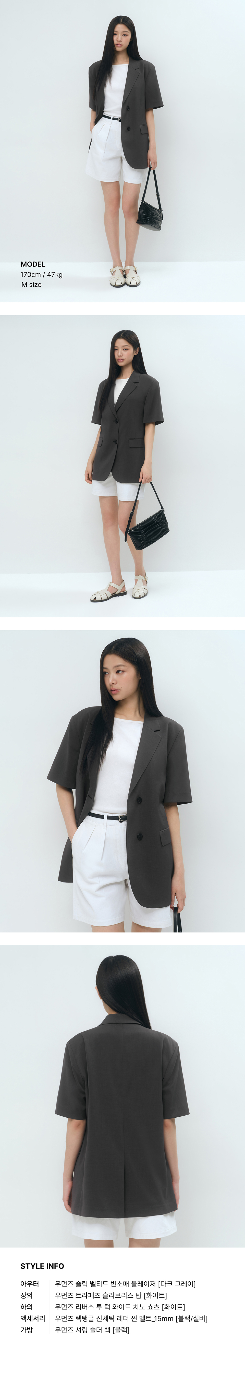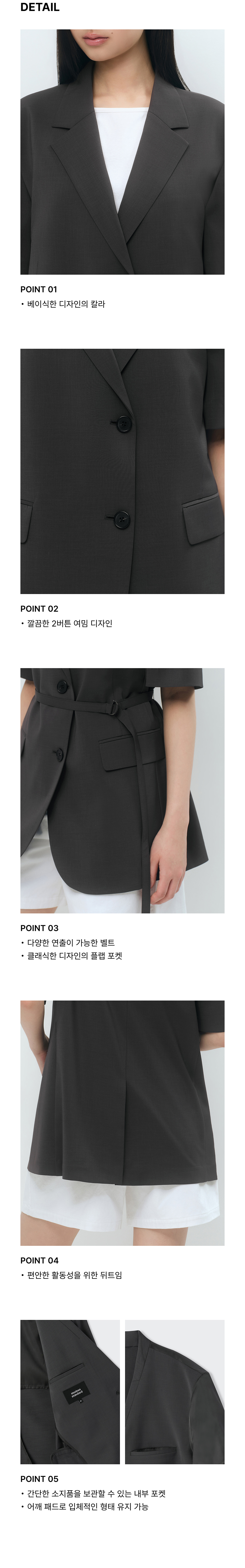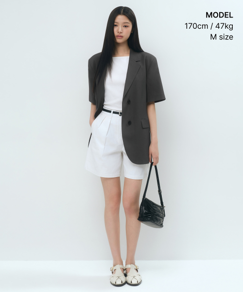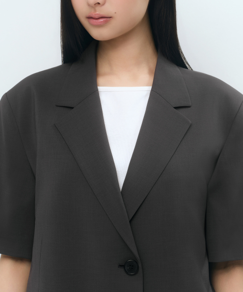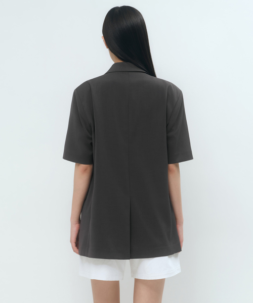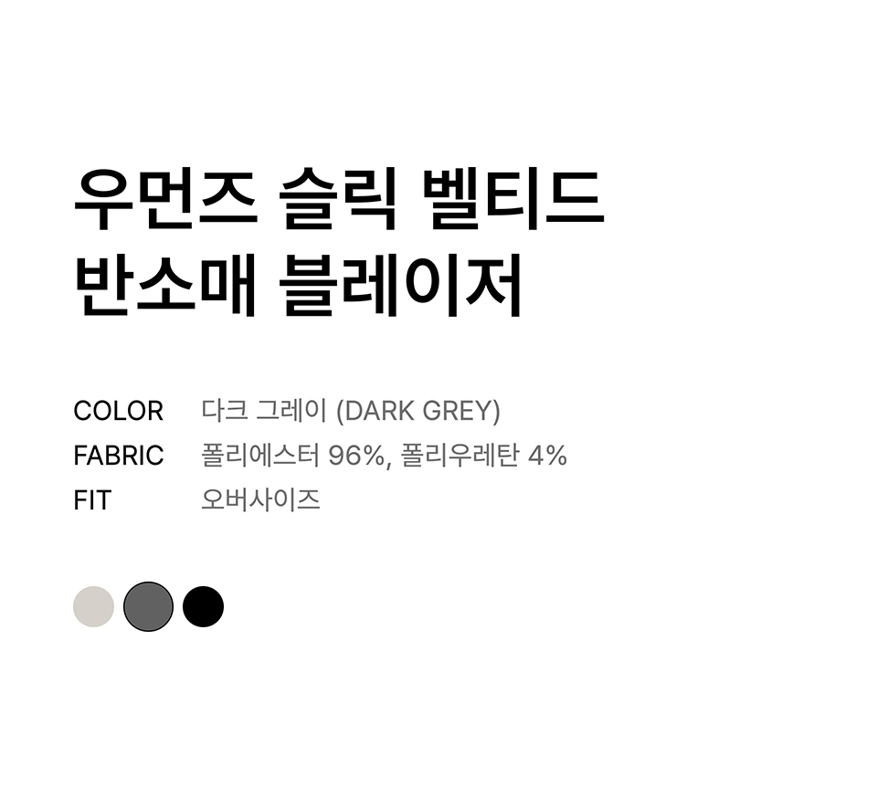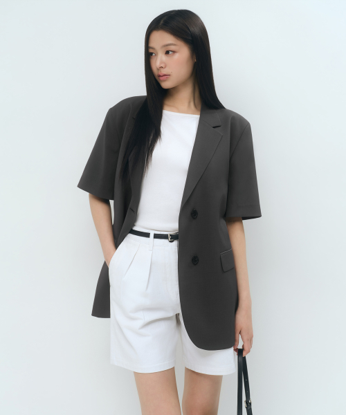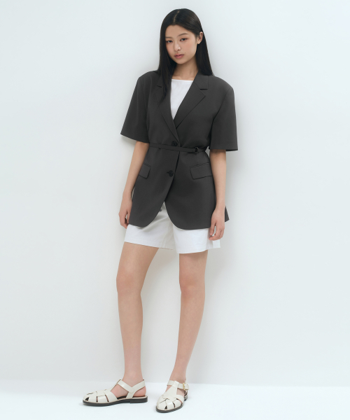 우먼즈 슬릭 벨티드 반소매 블레이저 [다크 그레이]