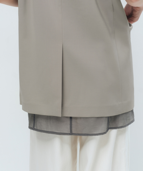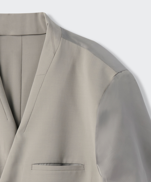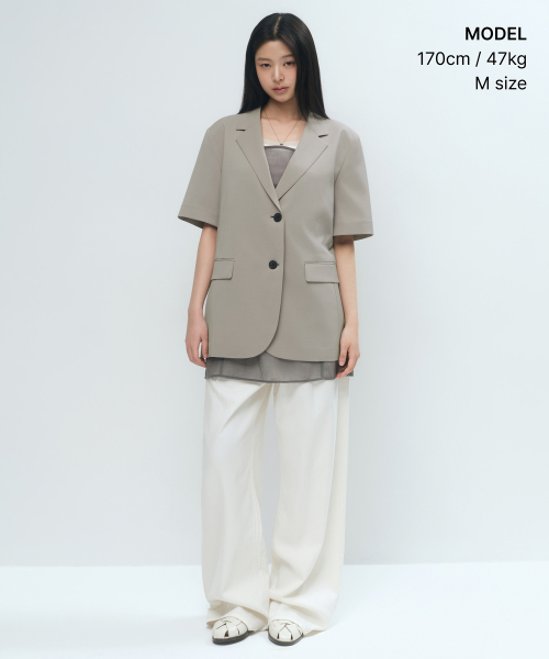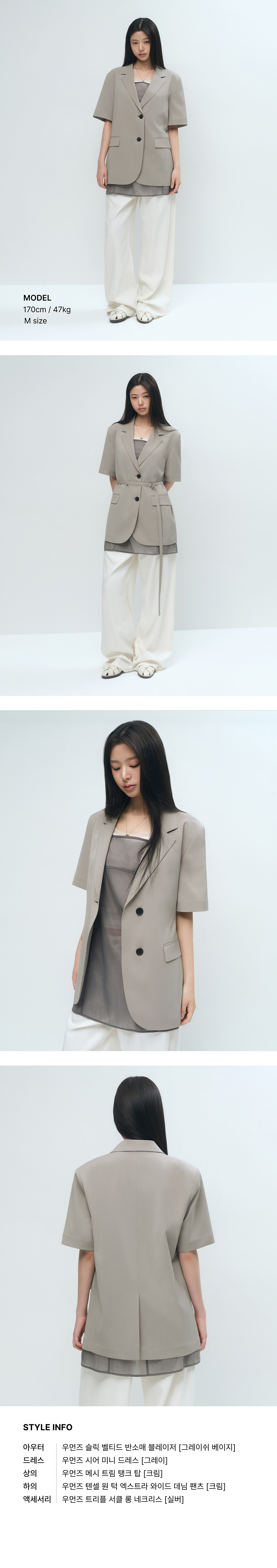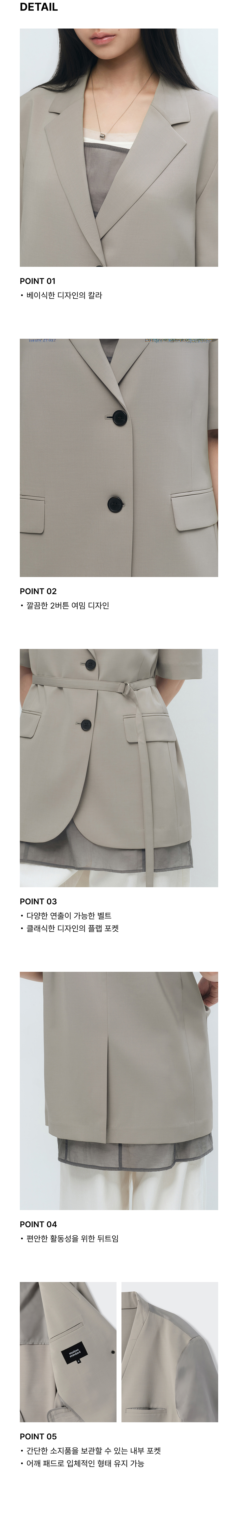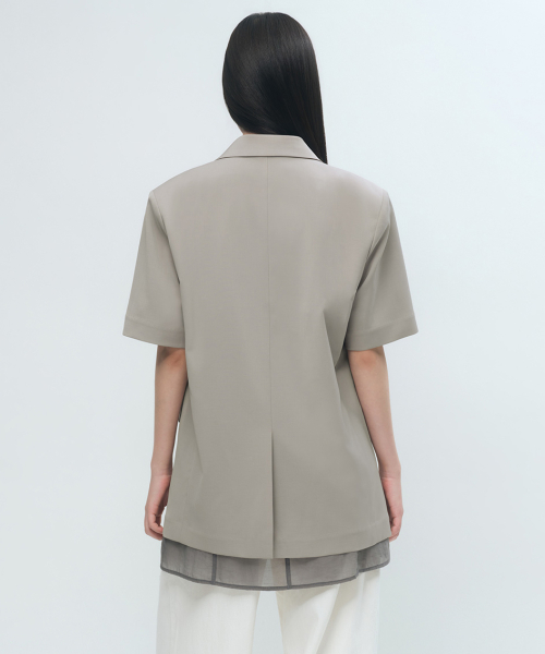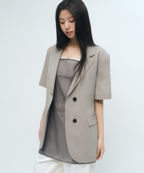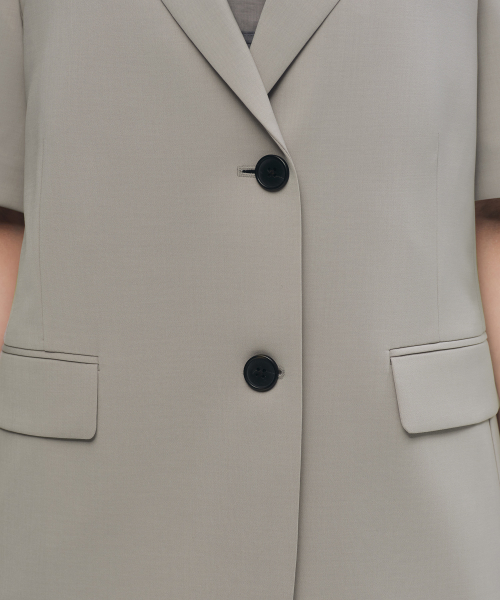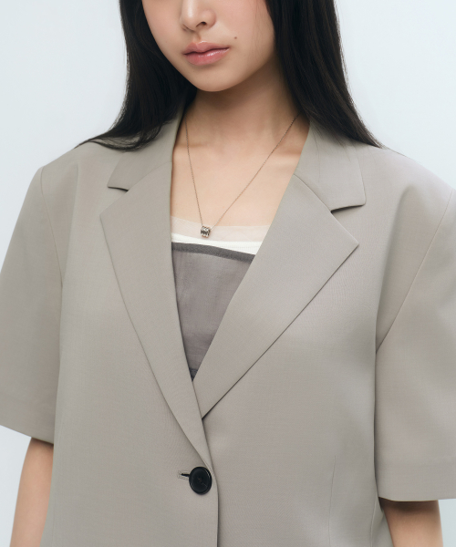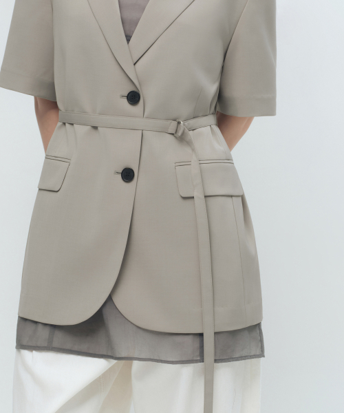 우먼즈 슬릭 벨티드 반소매 블레이저 [그레이쉬 베이지]