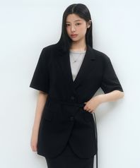 우먼즈 슬릭 벨티드 반소매 블레이저 [블랙]