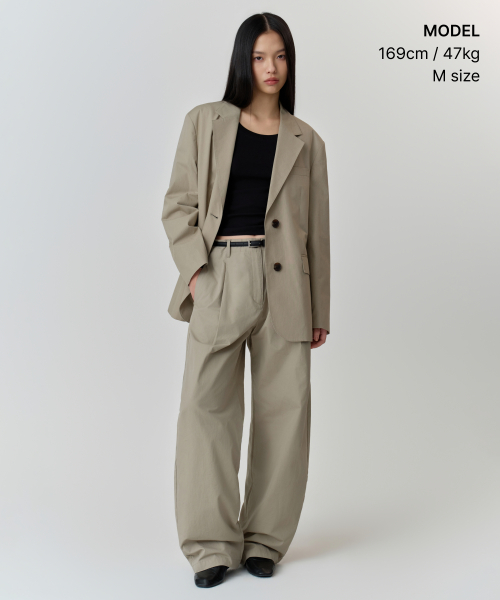 우먼즈 워시드 코튼 딥 턱 와이드 팬츠 [카키 베이지]