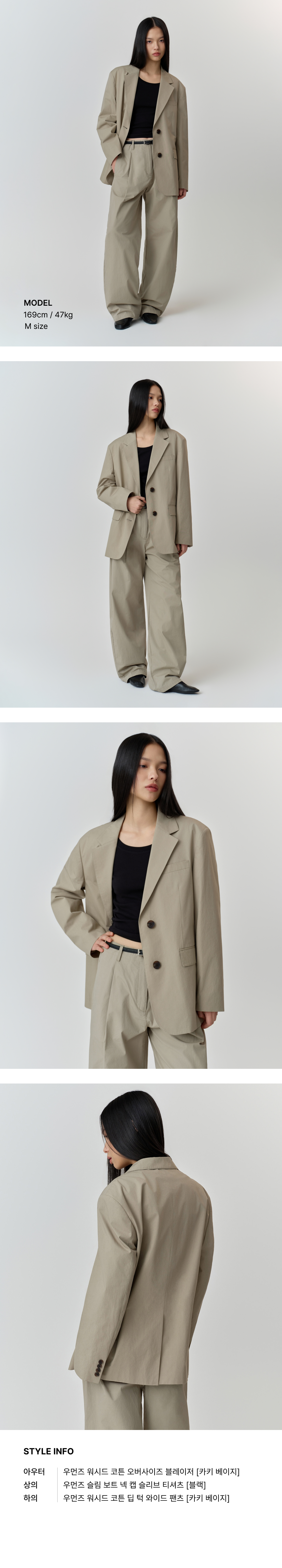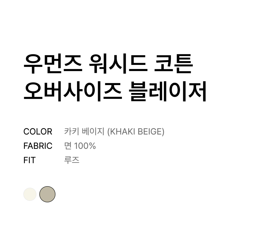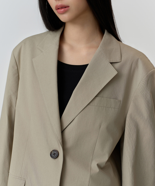 우먼즈 워시드 코튼 오버사이즈 블레이저 [카키 베이지]