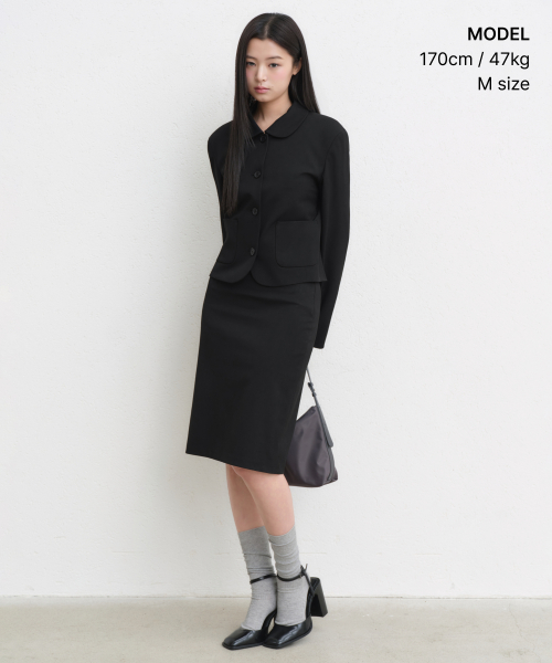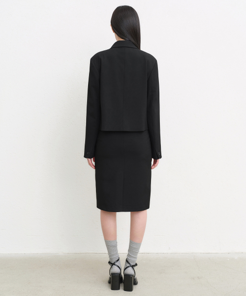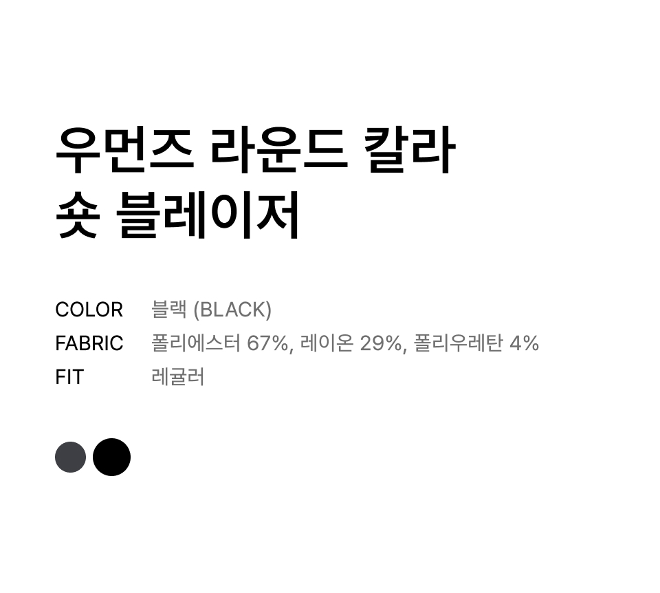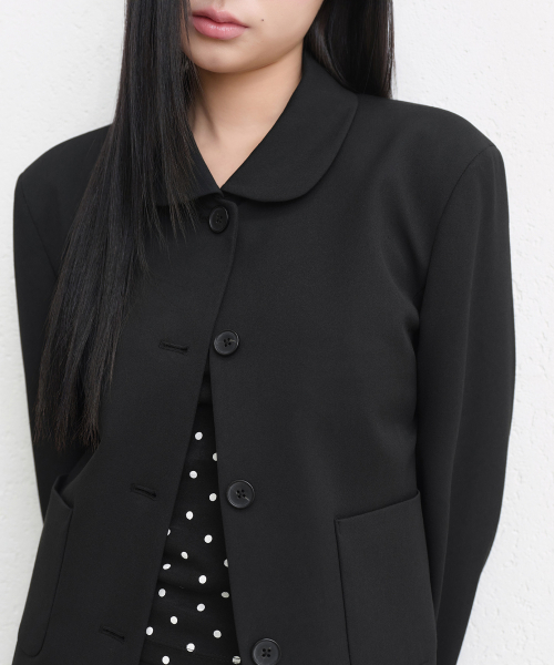 우먼즈 라운드 칼라 숏 블레이저 [블랙]