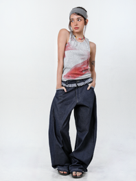 체크메이트 프릴 커브드 데님 팬츠 (Blue)