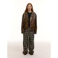 (UNISEX) 페이크 레더 바이커 재킷 브라운