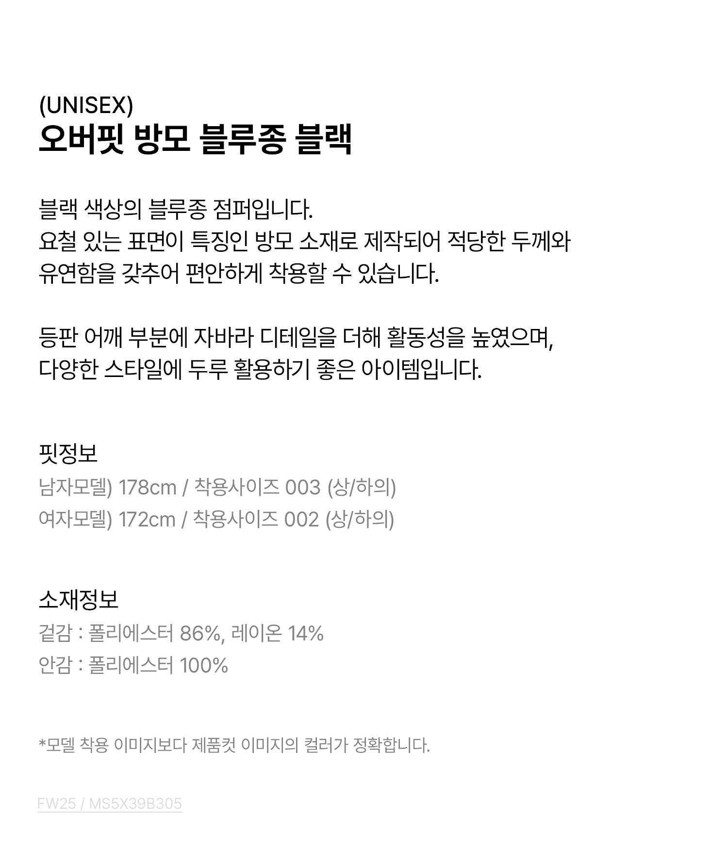 (UNISEX) 오버핏 방모 블루종 블랙