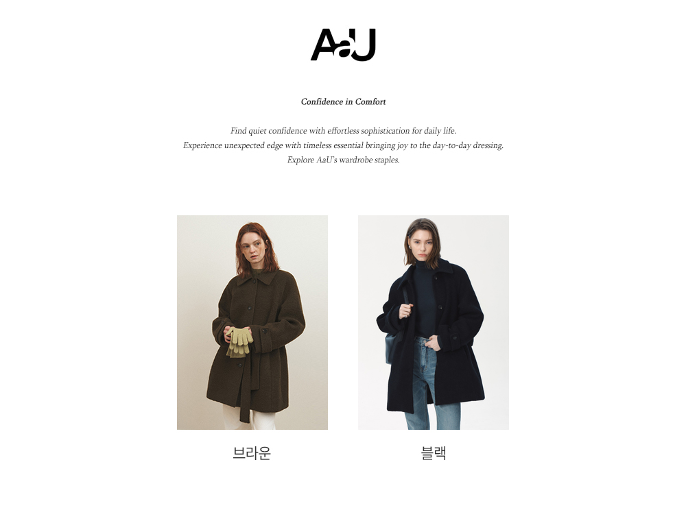 에이에이유(AAU)는 당신의 모든 것을 위한, 당신에게 집중하는 브랜드로 내 몸에 맞춘 듯한 편안함과 격식에 구애받지 않는 데일리 아이템으로 일상에 한 포인트의 멋을 더하는 브랜드입니다.