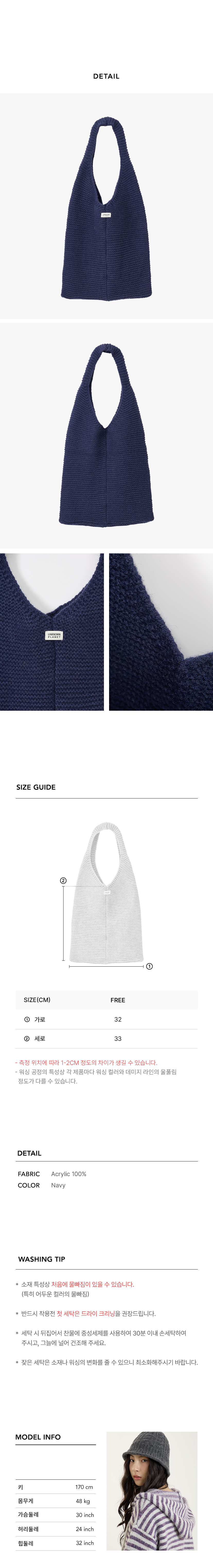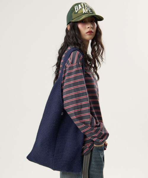 니트 숄더백 블루