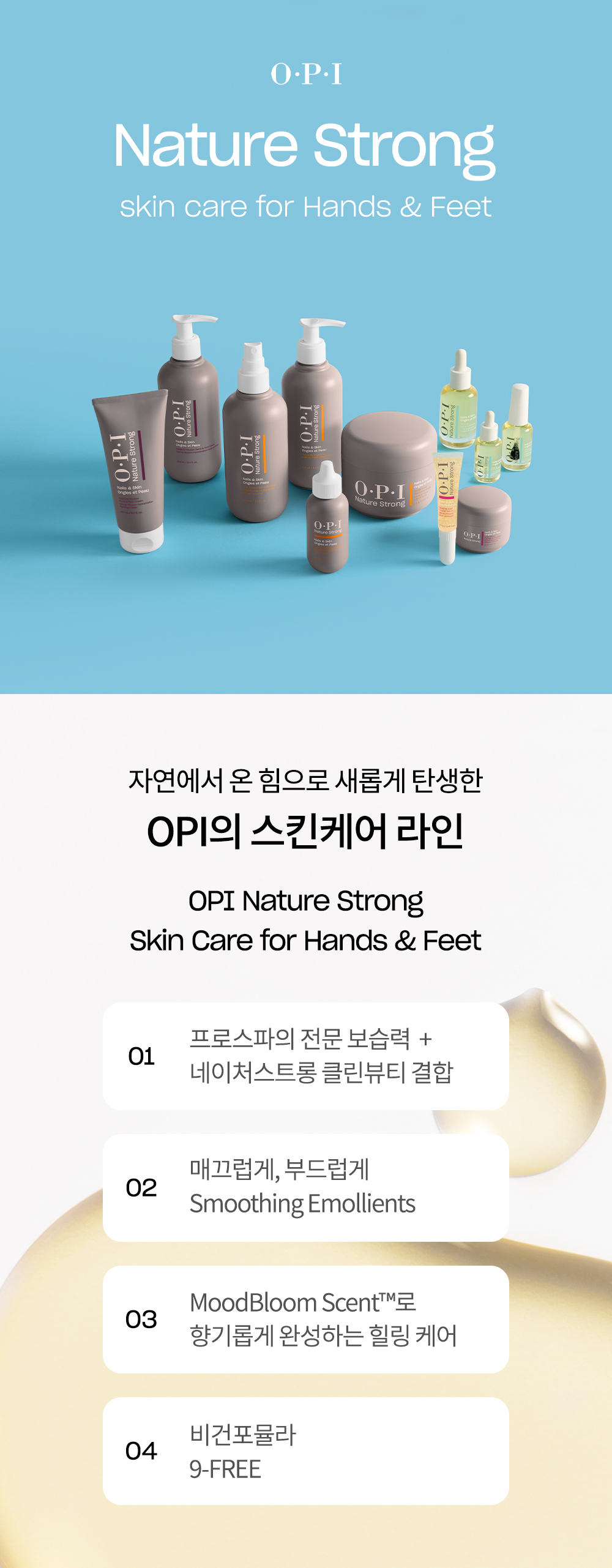 오피아이(O.P.I)는 손 끝에서 본연의 아름다움이 완성 되도록, 누구나 스스로에게 어울리는 컬러를 찾을 수 있도록 세상의 모든 컬러를 재현해낼 수 있는 단 하나의 브랜드입니다.
