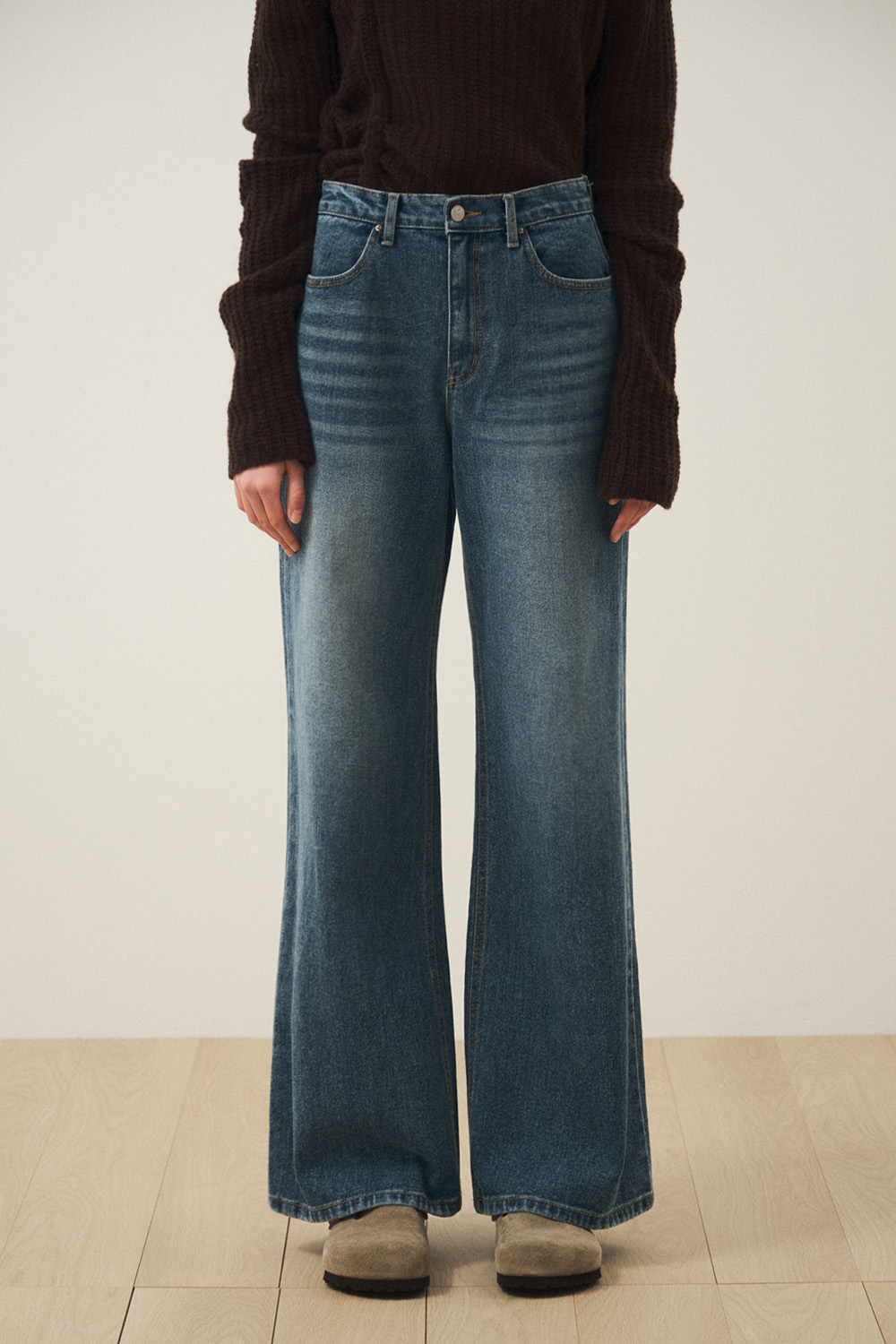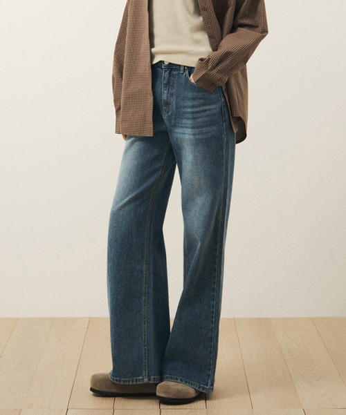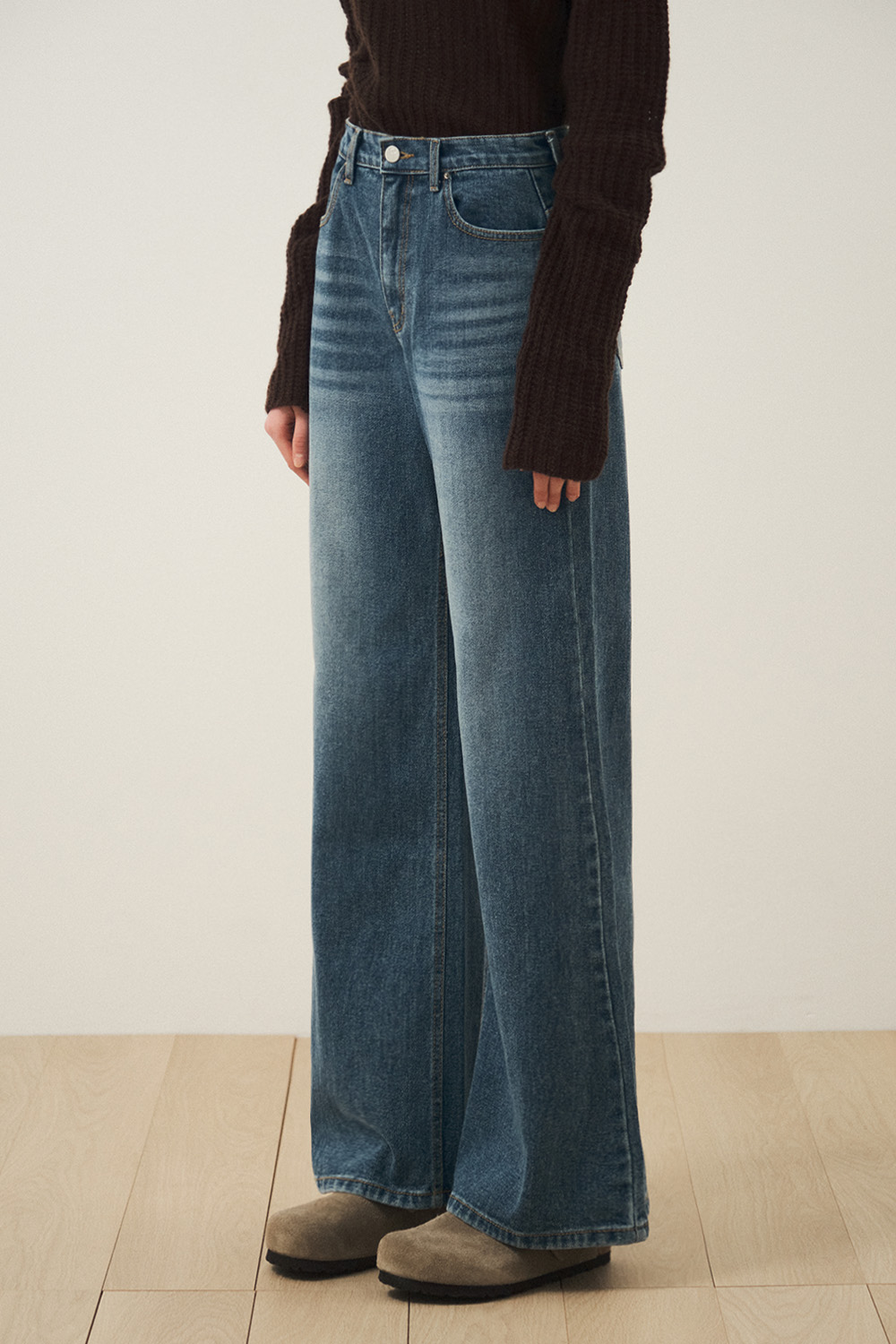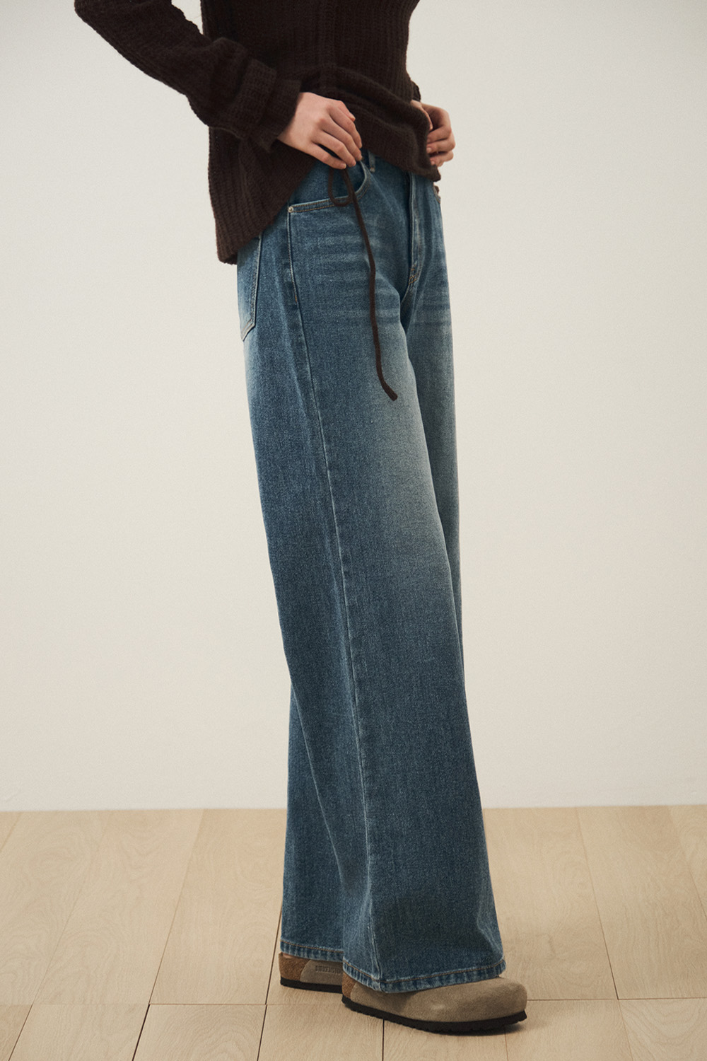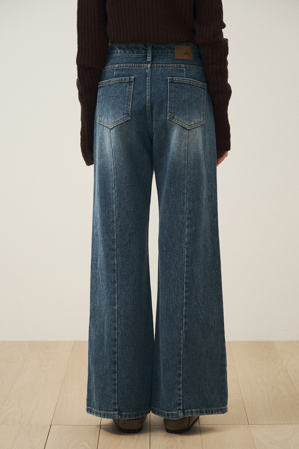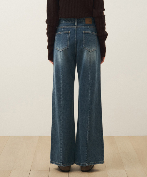 우먼즈 프레스 크리즈 와이드 데님 팬츠 [딥 인디고]