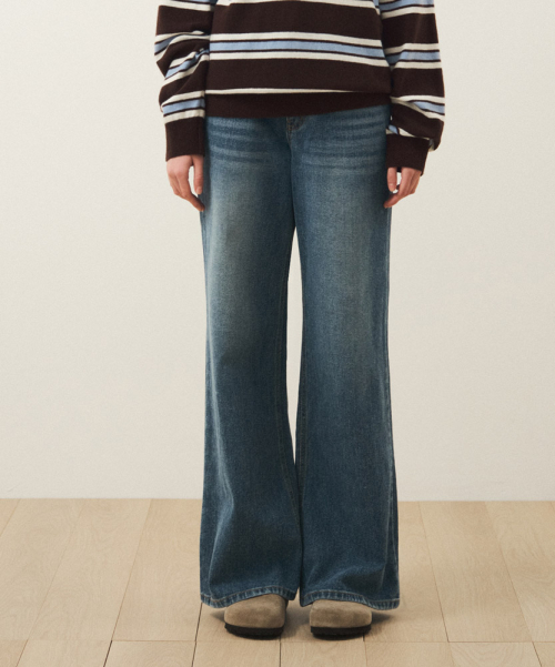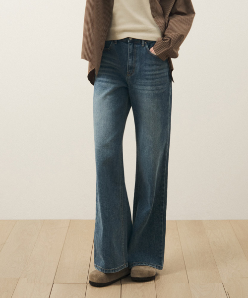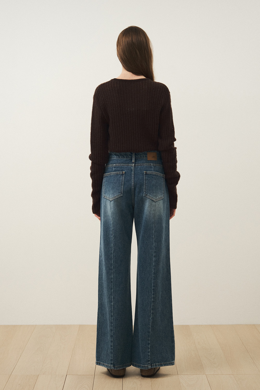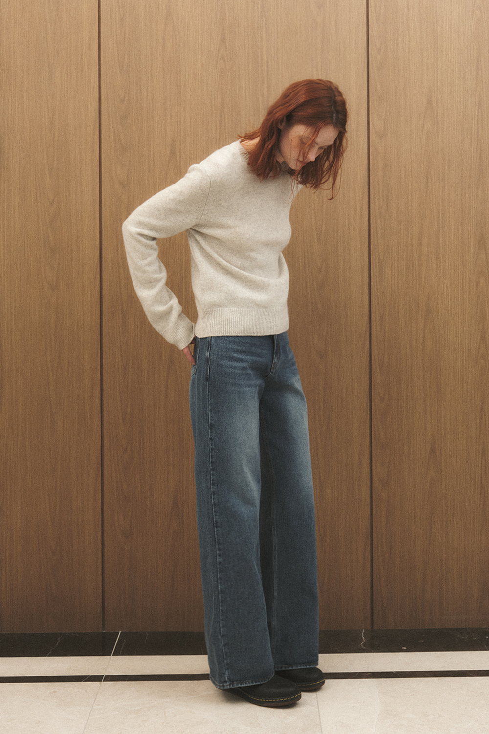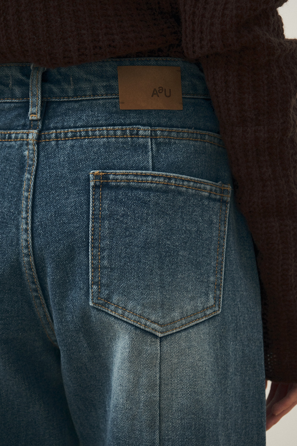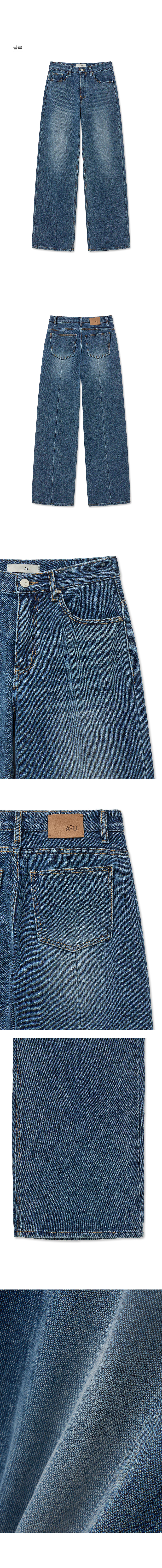 우먼즈 프레스 크리즈 와이드 데님 팬츠 [딥 인디고]