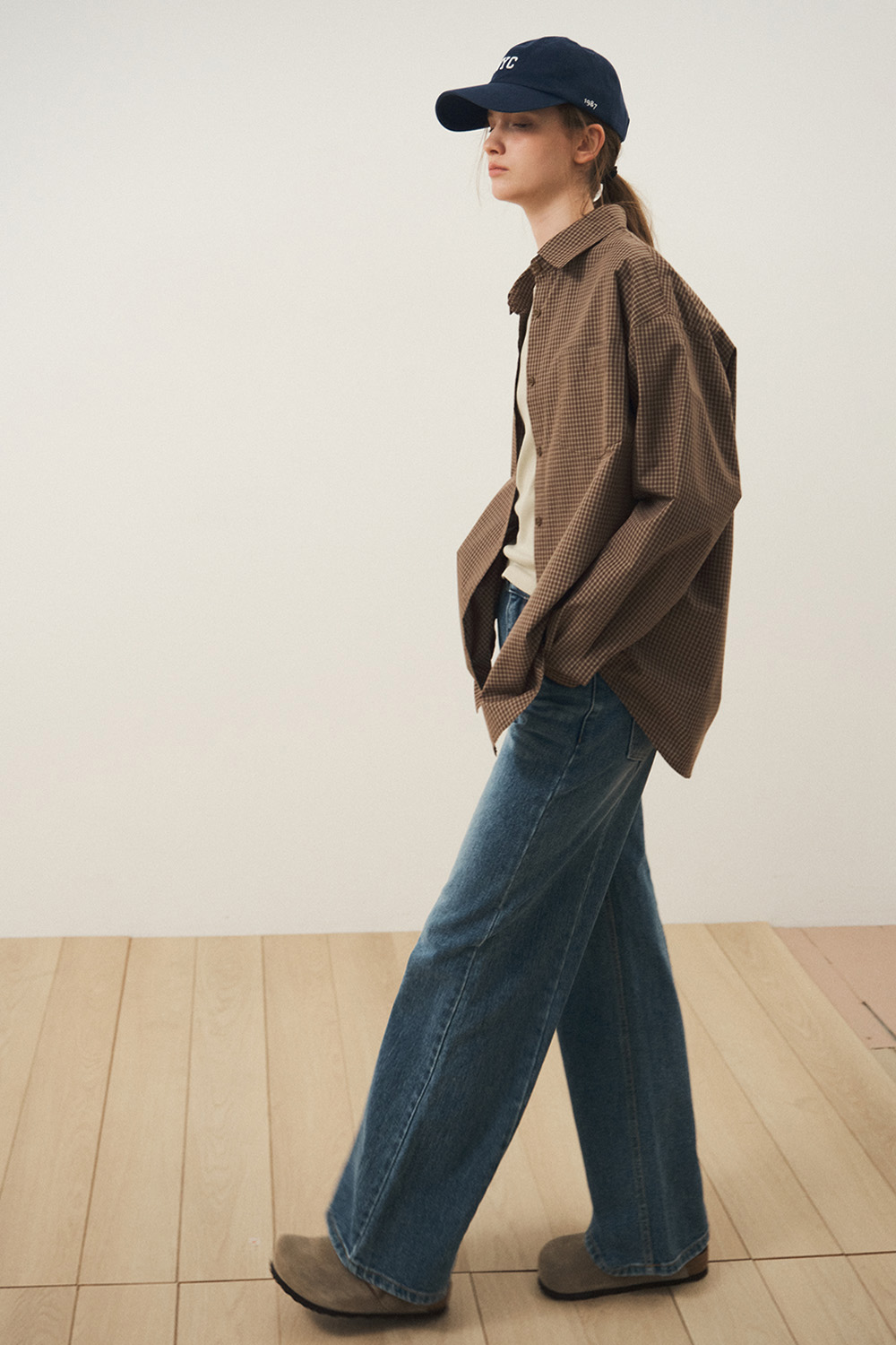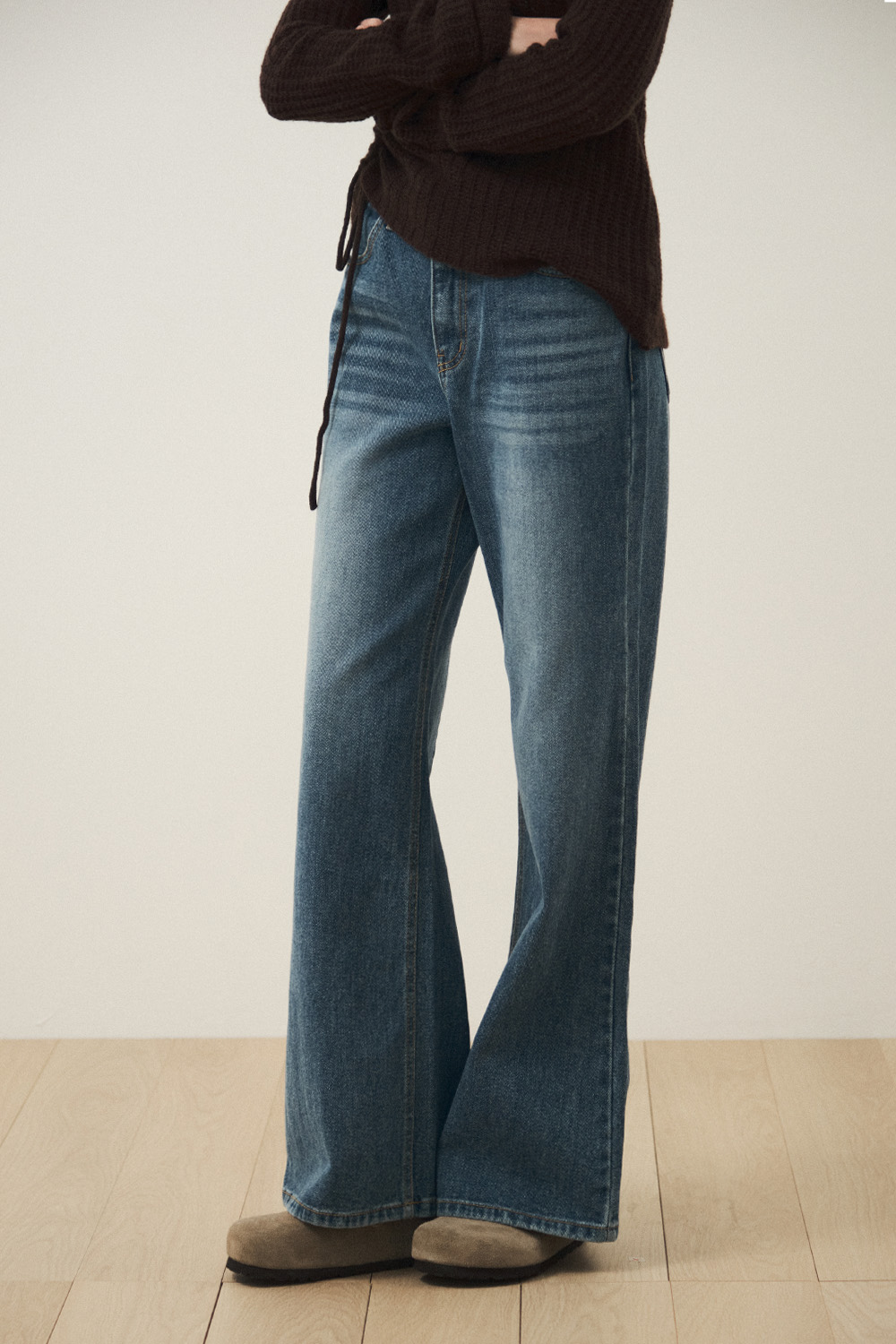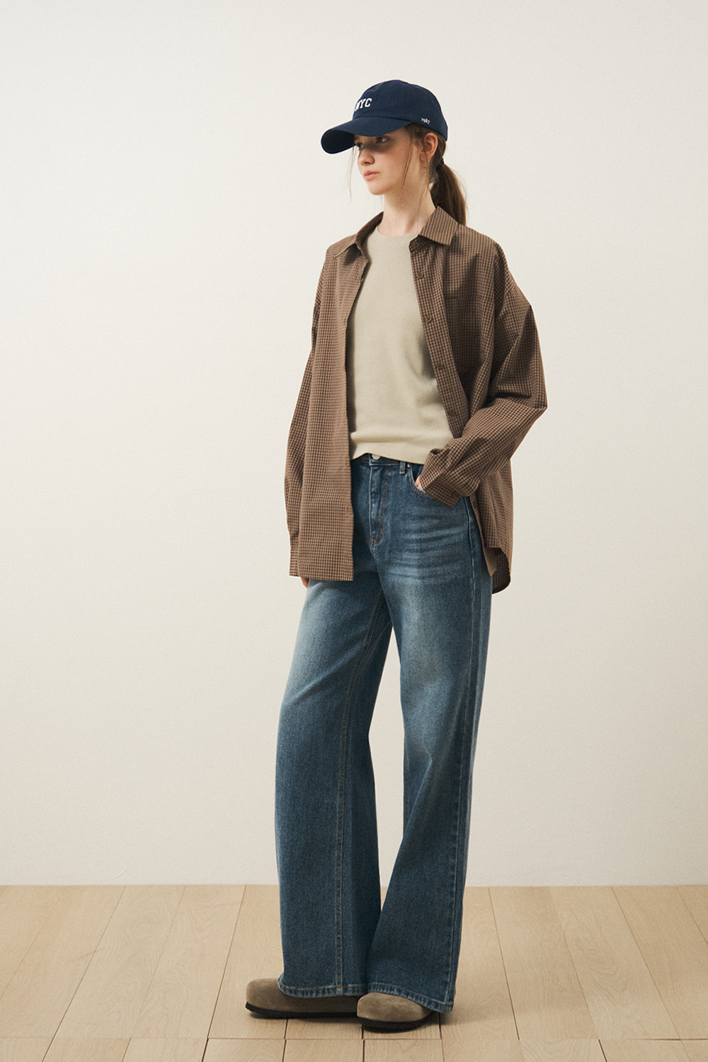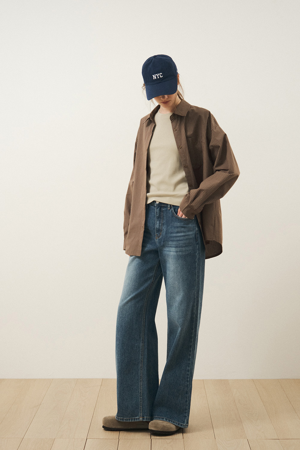 우먼즈 프레스 크리즈 와이드 데님 팬츠 [딥 인디고]