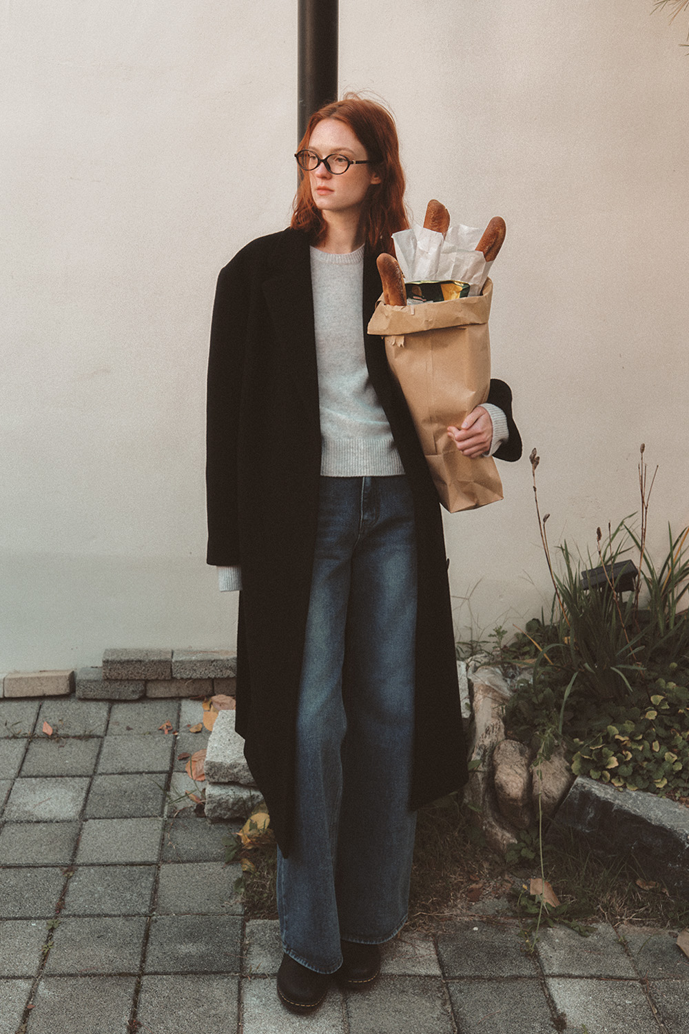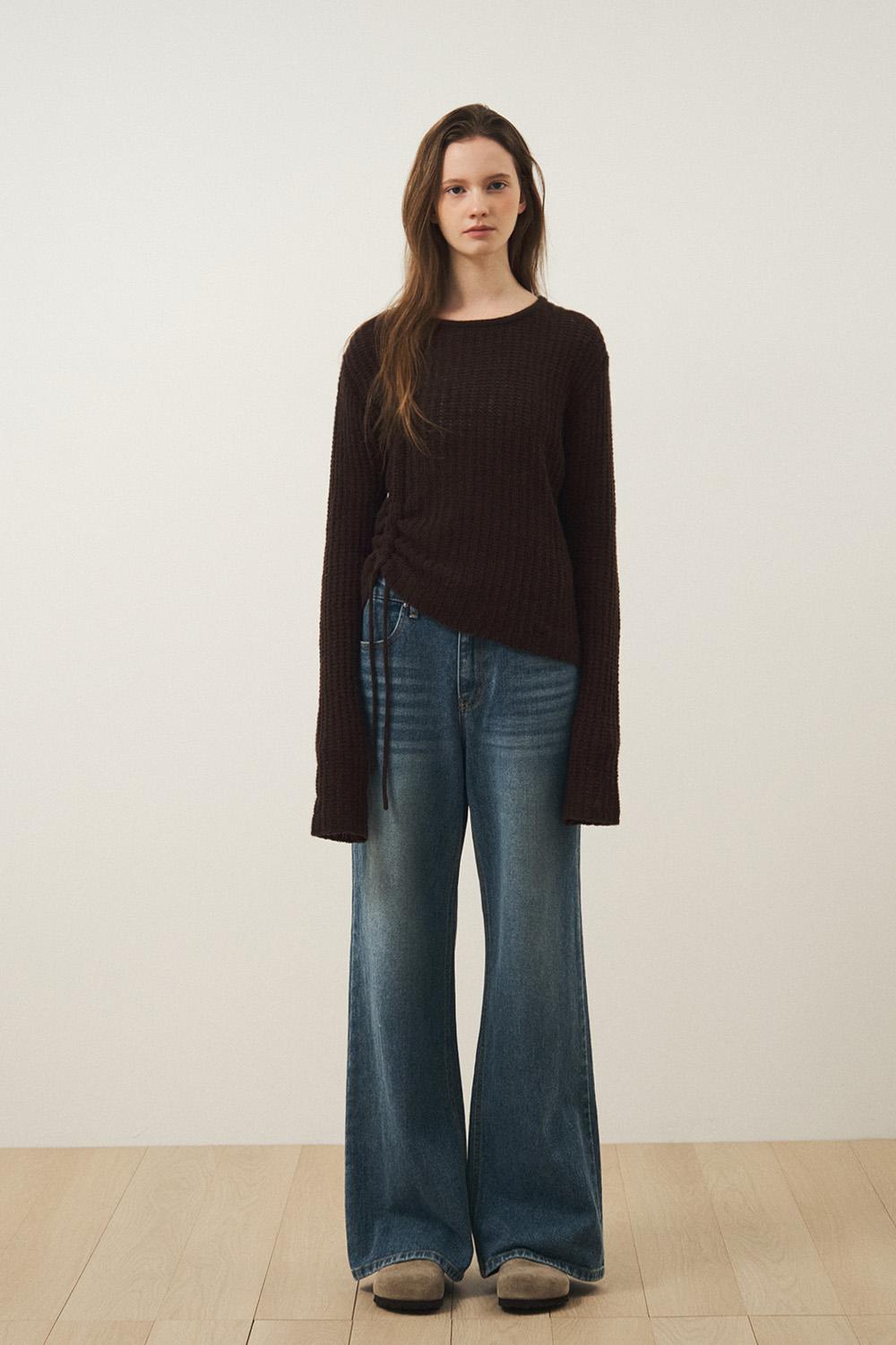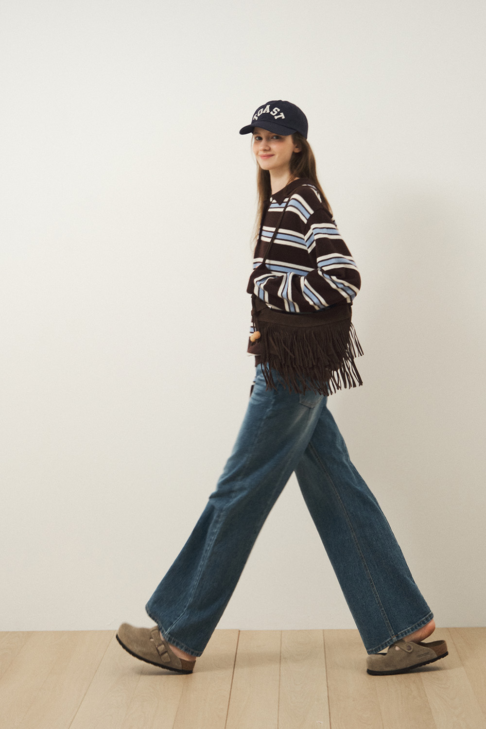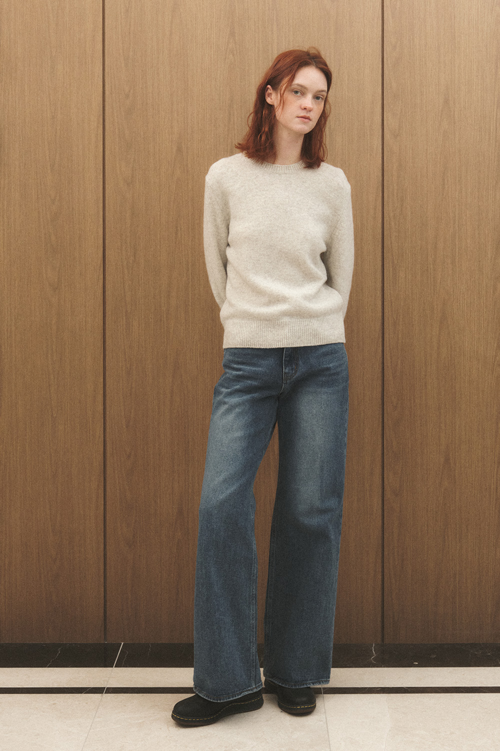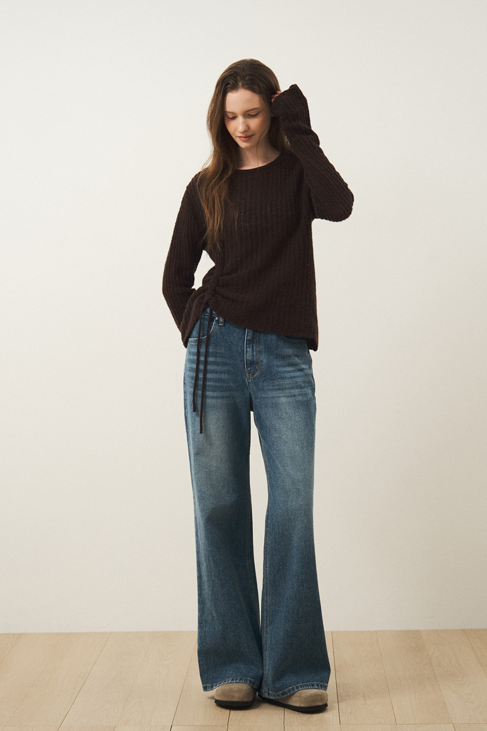 우먼즈 프레스 크리즈 와이드 데님 팬츠 [딥 인디고]