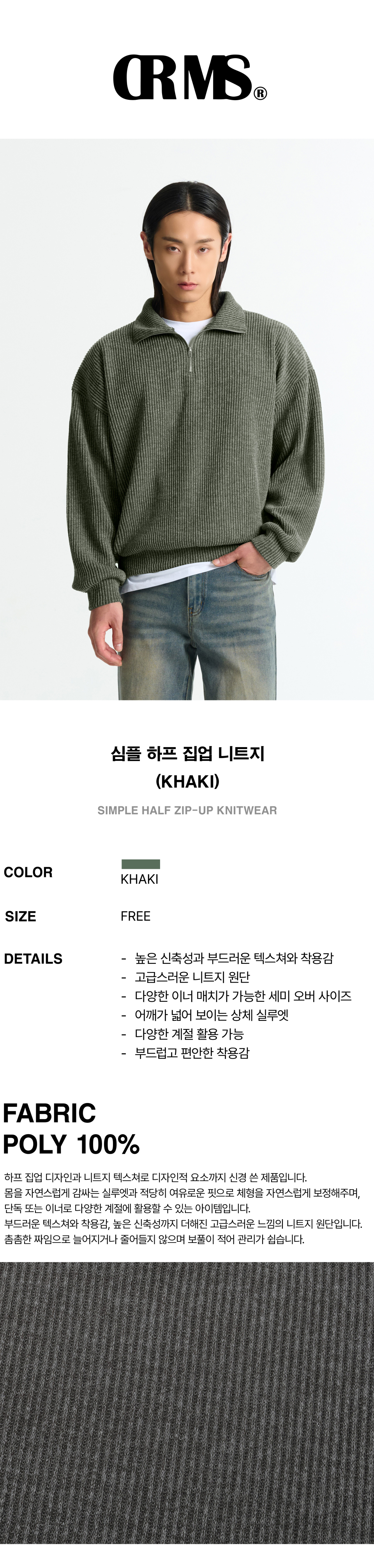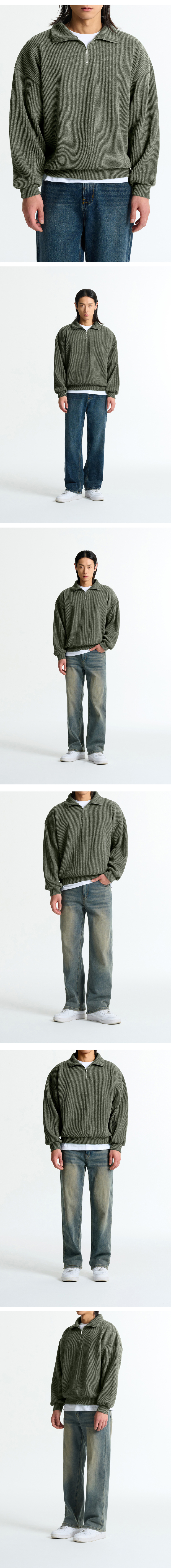심플 하프 집업 니트지(Khaki)