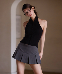 BACK-PLEATED WIDE PANTS (DARK NAVY)