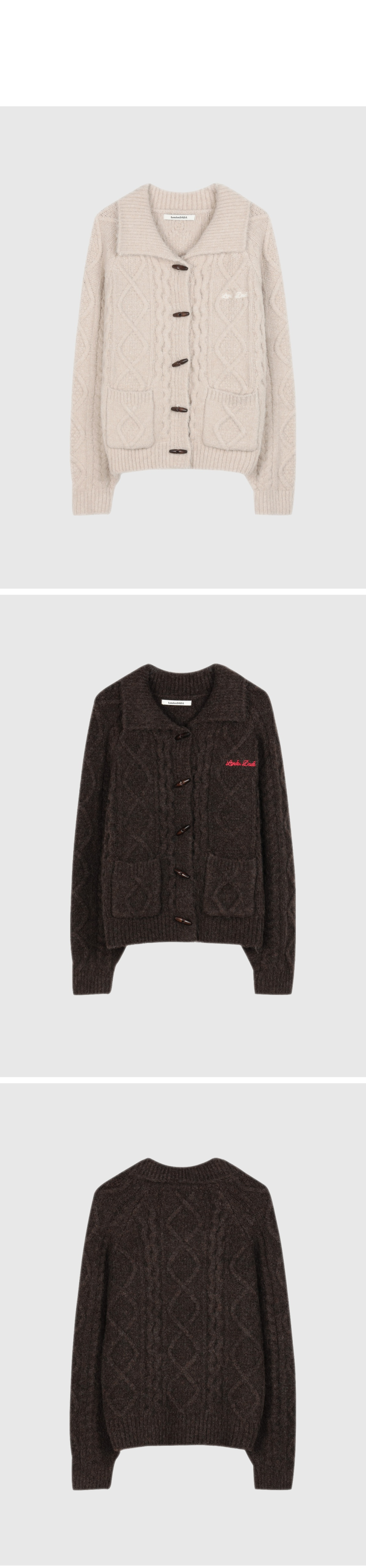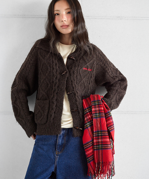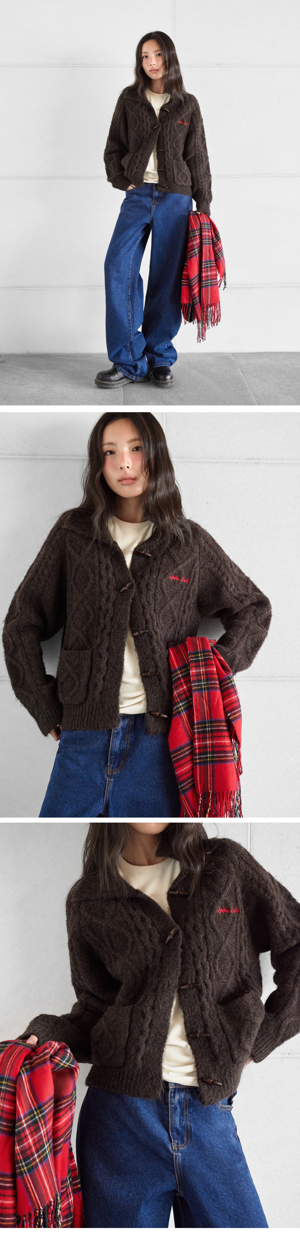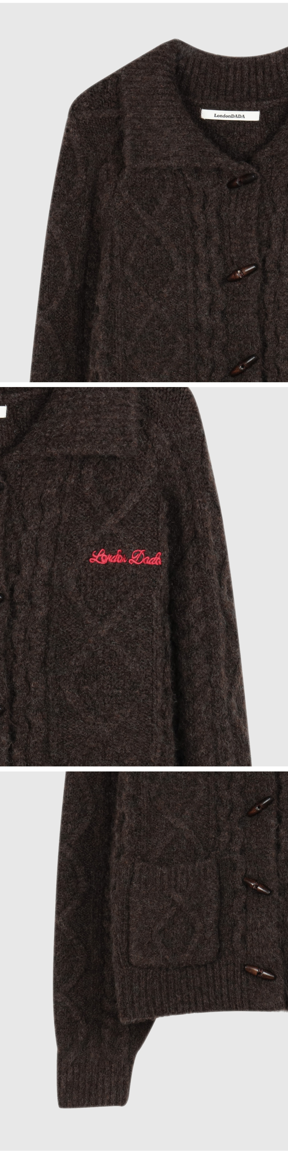 TOGGLE BUTTON CABLE COLLAR CARDIGAN, D.BROWN