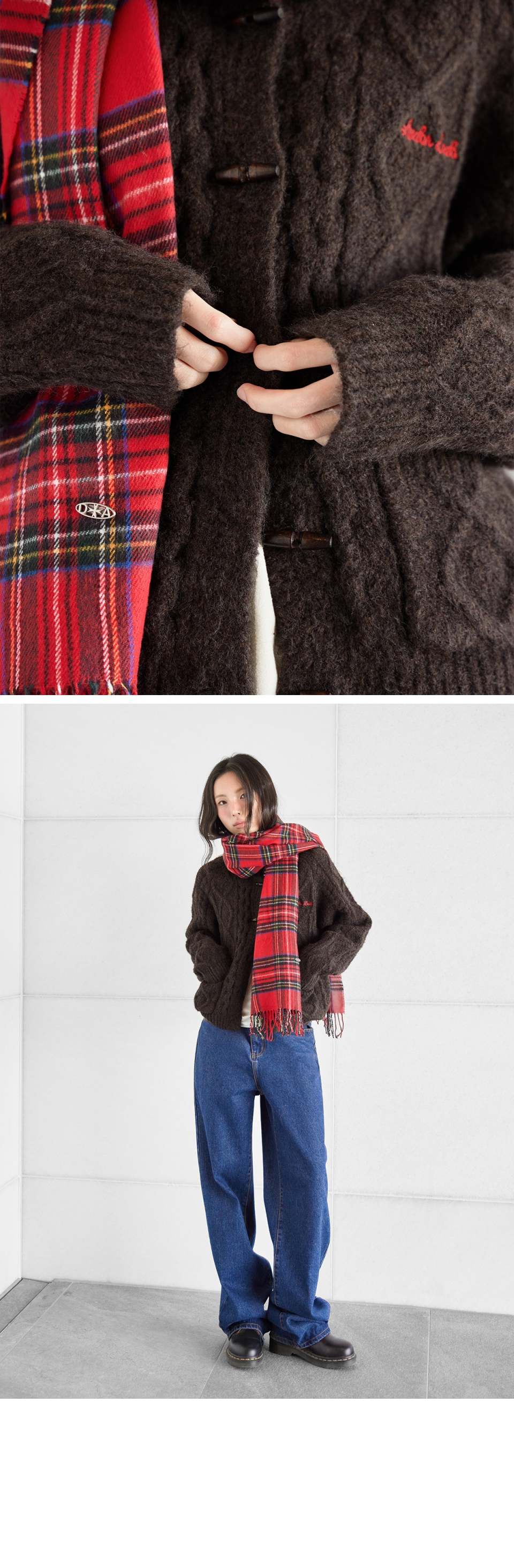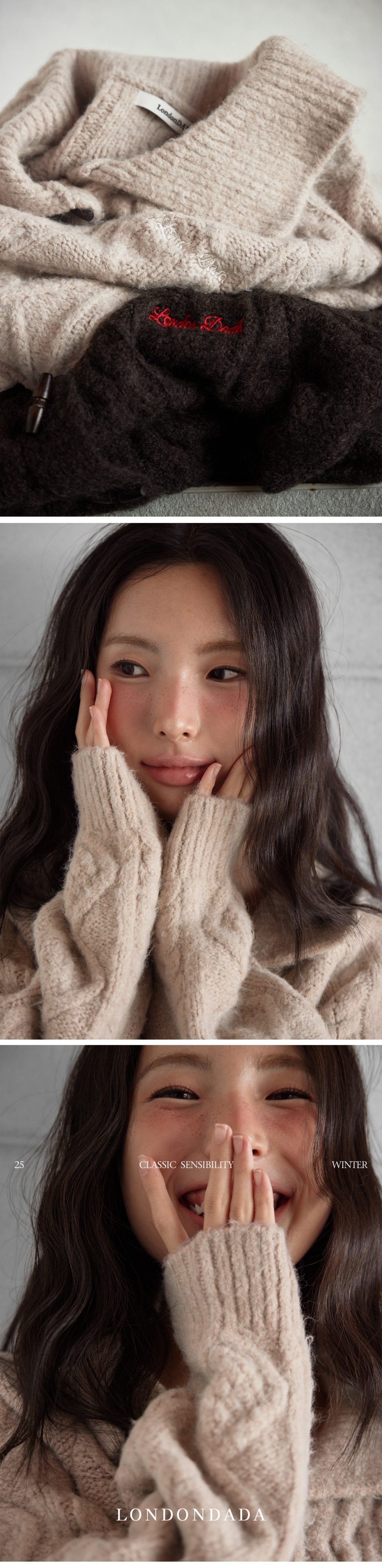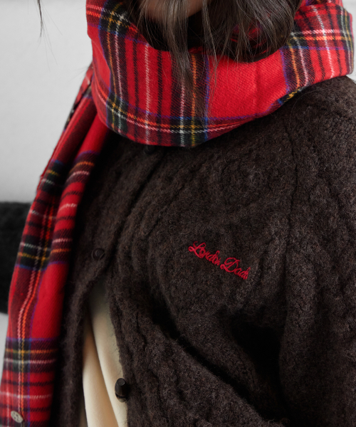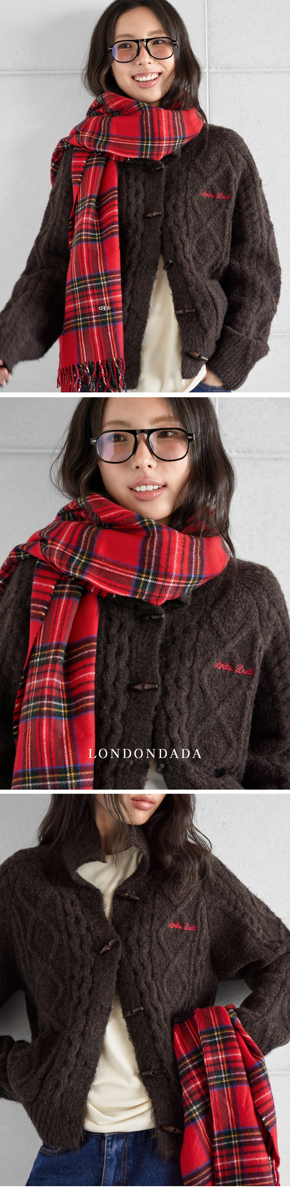 TOGGLE BUTTON CABLE COLLAR CARDIGAN, D.BROWN