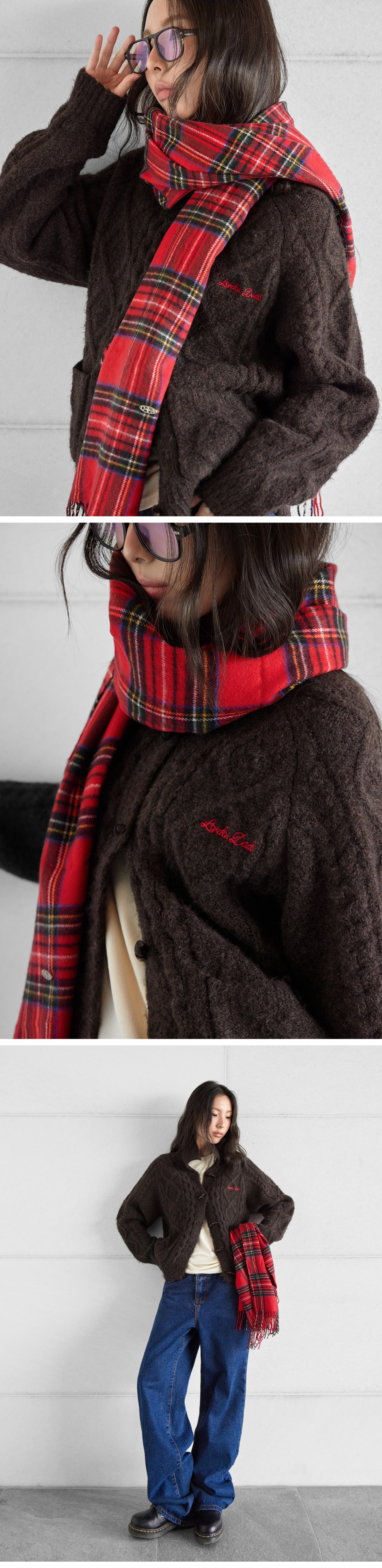 체크 프릴 레이어드 후드 스트링 롱 슬리브 가디건_2COLOR
