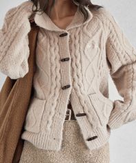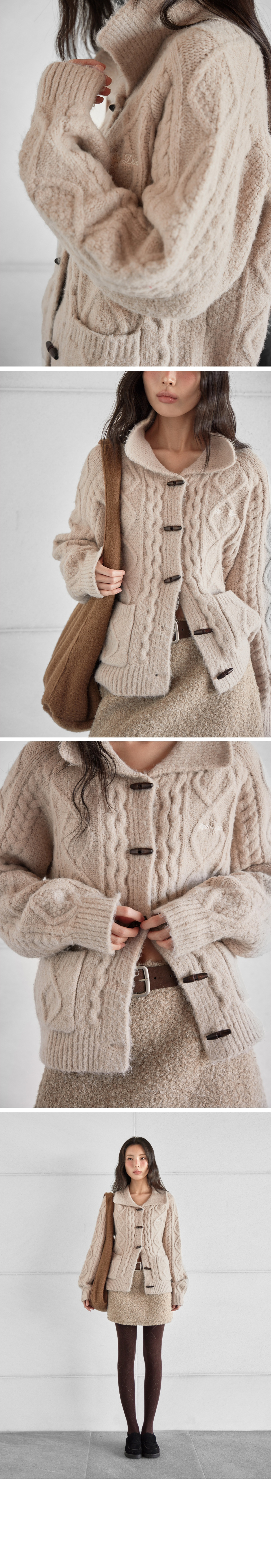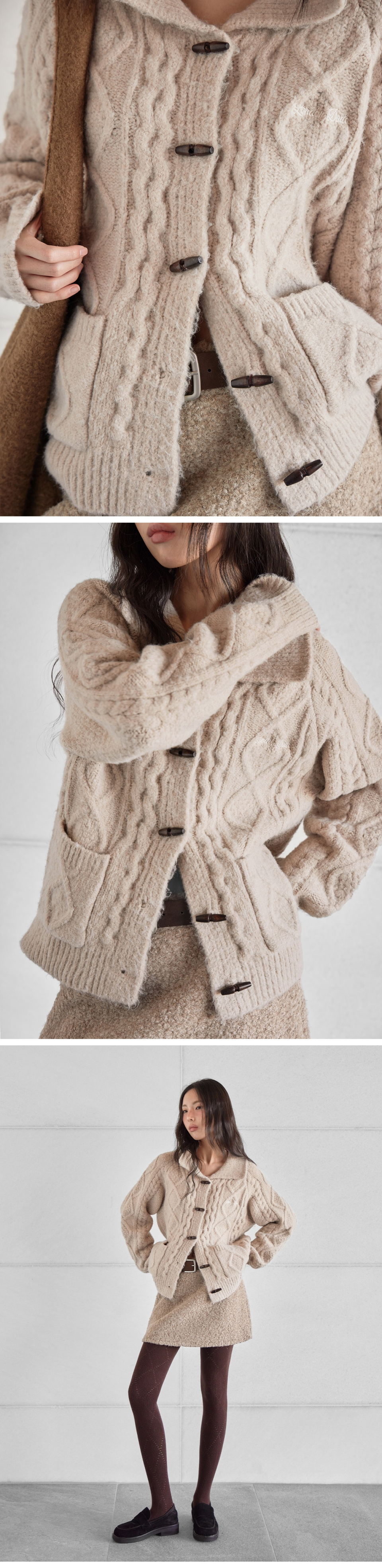 TOGGLE BUTTON CABLE COLLAR CARDIGAN, OAT BEIGE