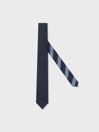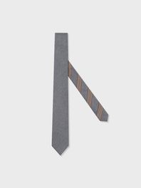 실크 70%와 울 30%가 블렌딩된 원단을 사용했습니다. 세계 최고의 실크 생산지인 이태리 코모에서 직조된 넥타이 전용 원단으로 실크 특유의 은은한 광택과 울 소재의 매트한 텍스처를 느끼실 수 있습니다. 가로와 세로의 실 컬러를 다르게 사용하여 빛의 방향에 따라 투톤의 고급스러운 색감이 나타납니다.