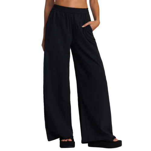 여성 블랙 면 스티치 롱 와이드 팬츠(VE11LP304BLK)