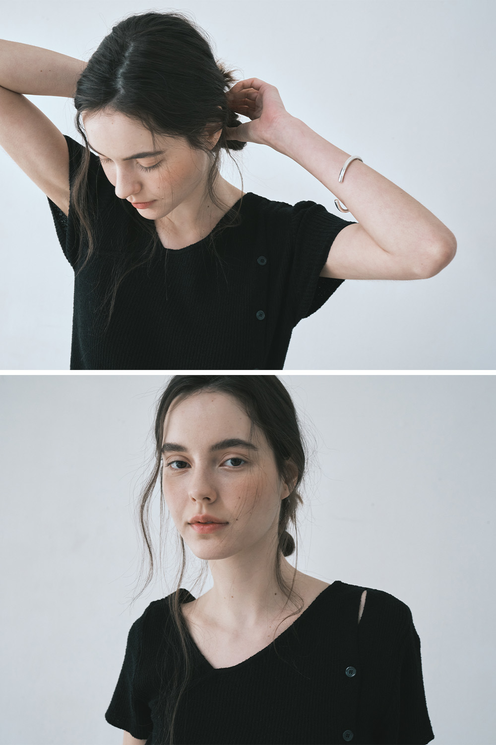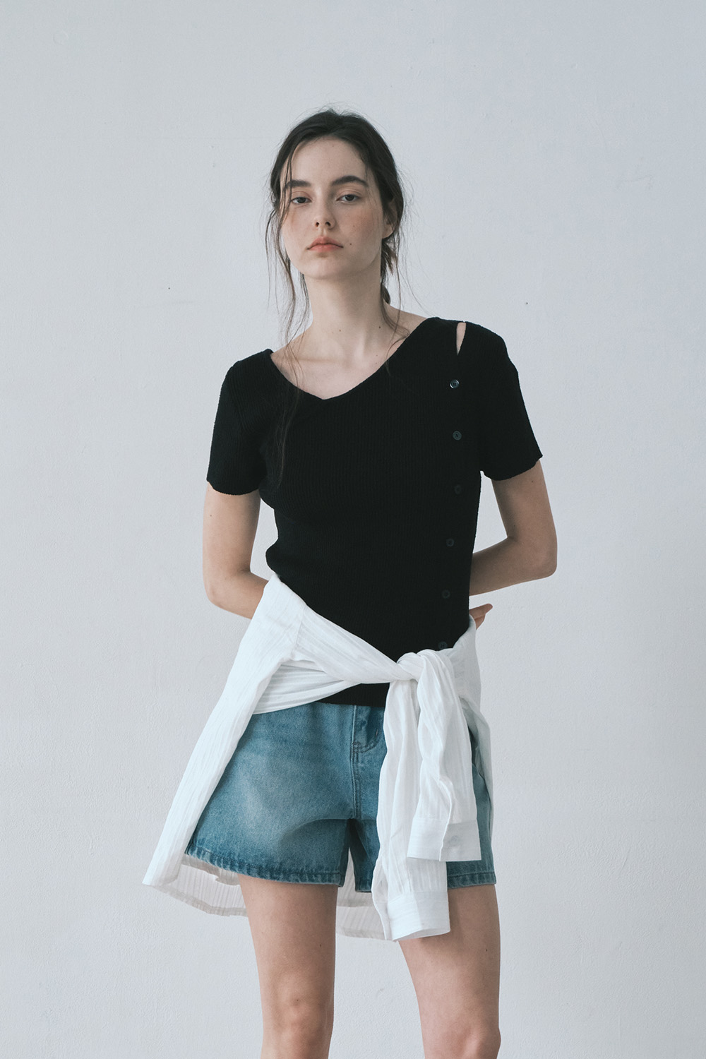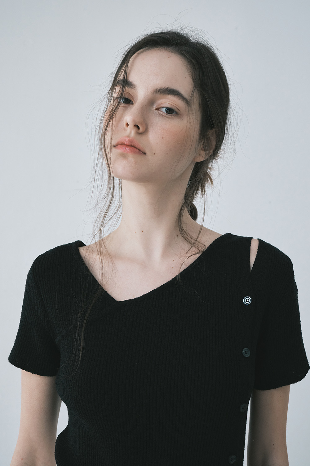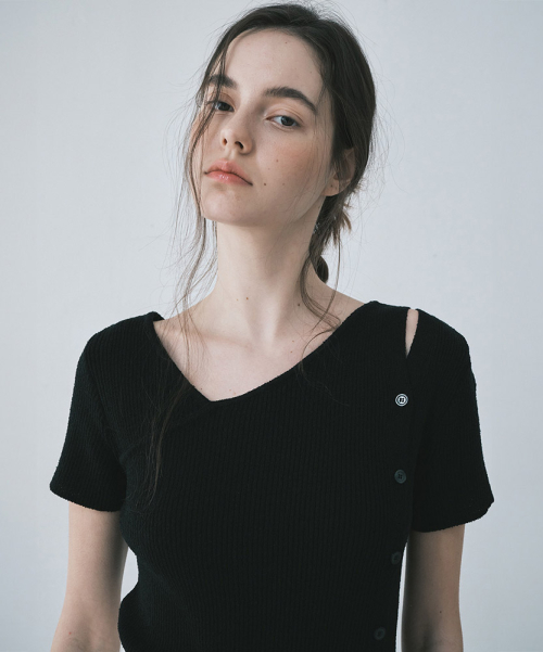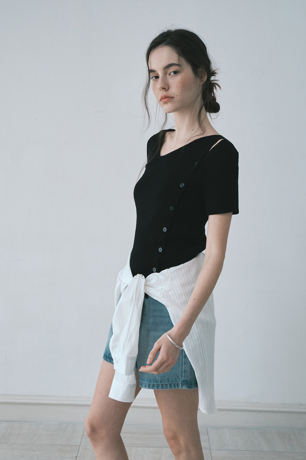 우먼즈 스퀘어 넥 니트 슬리브리스 탑 [블랙]