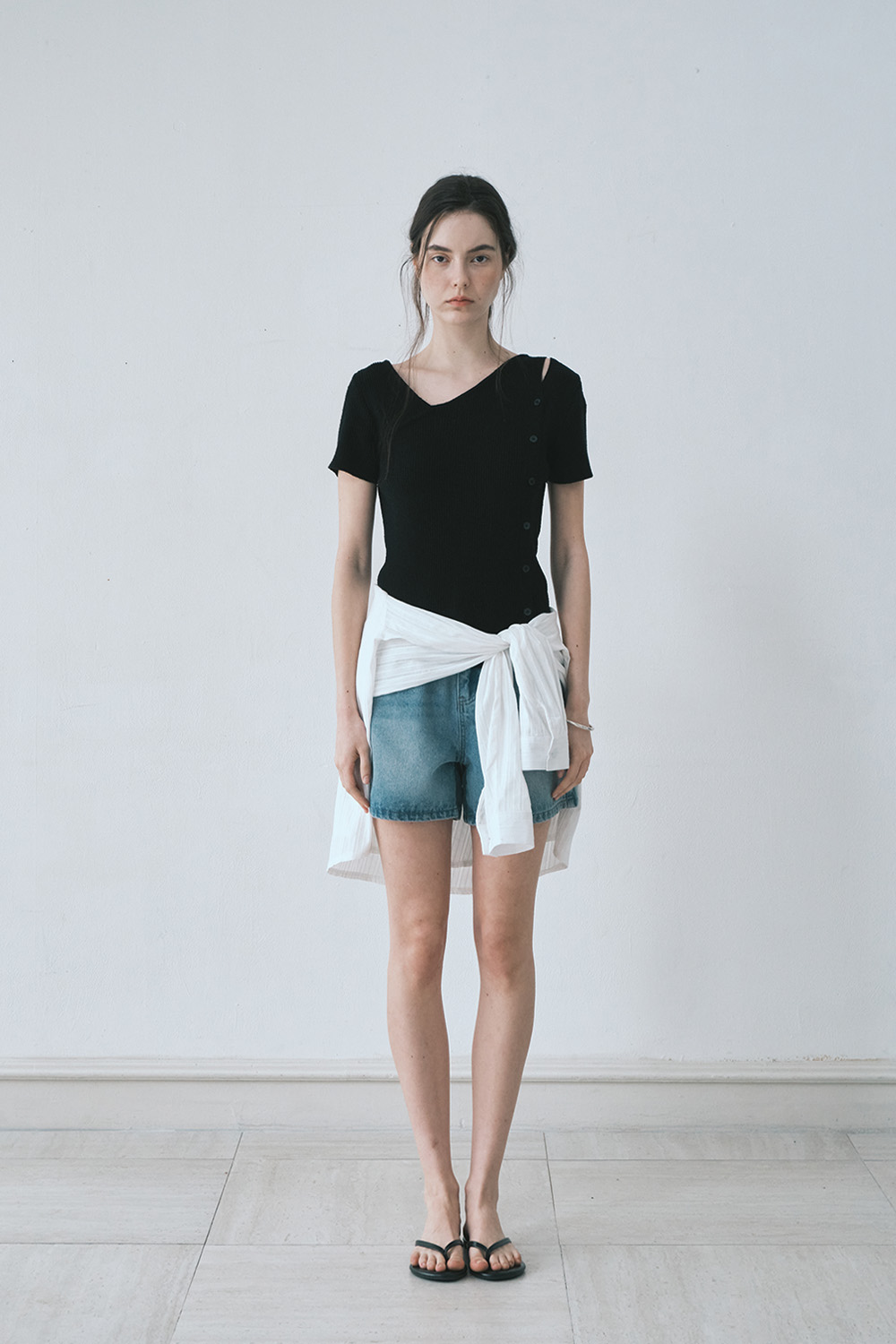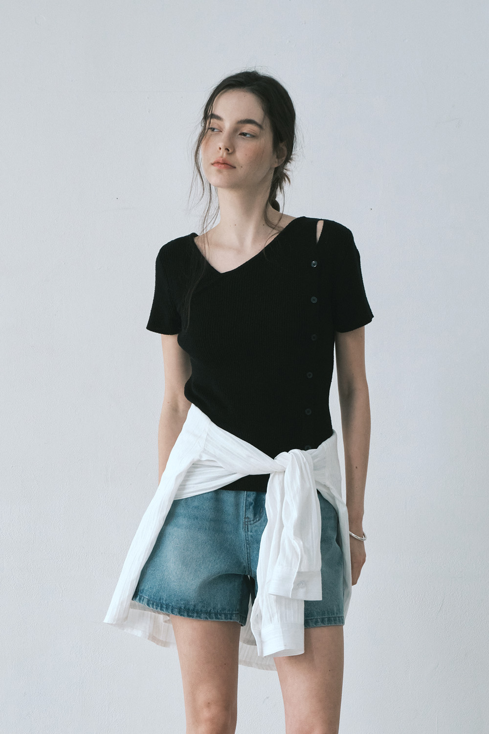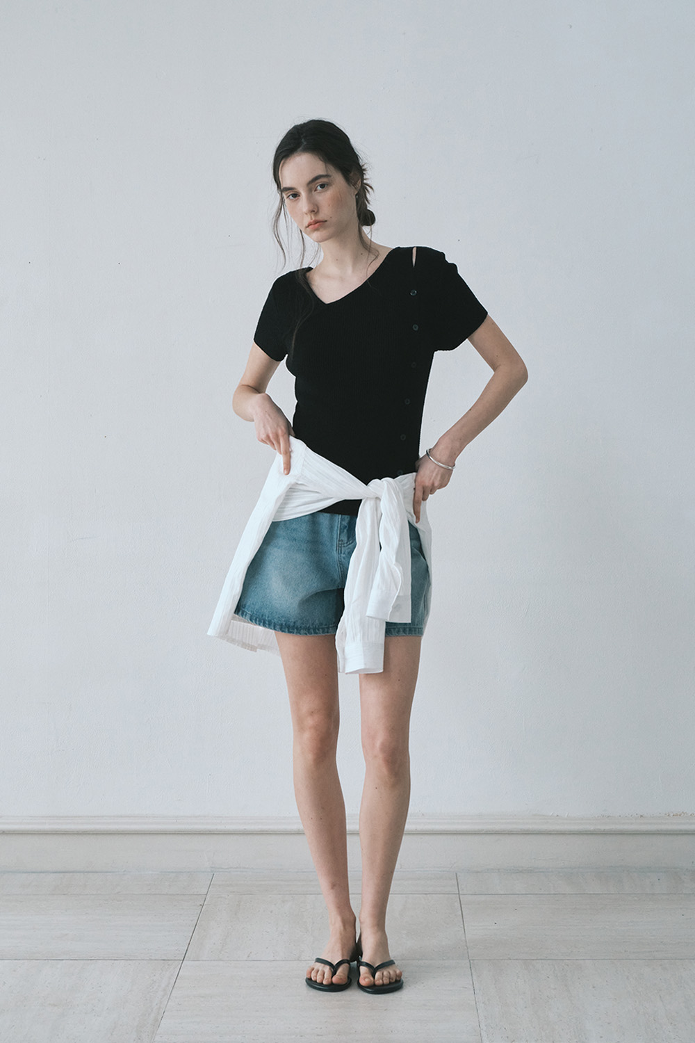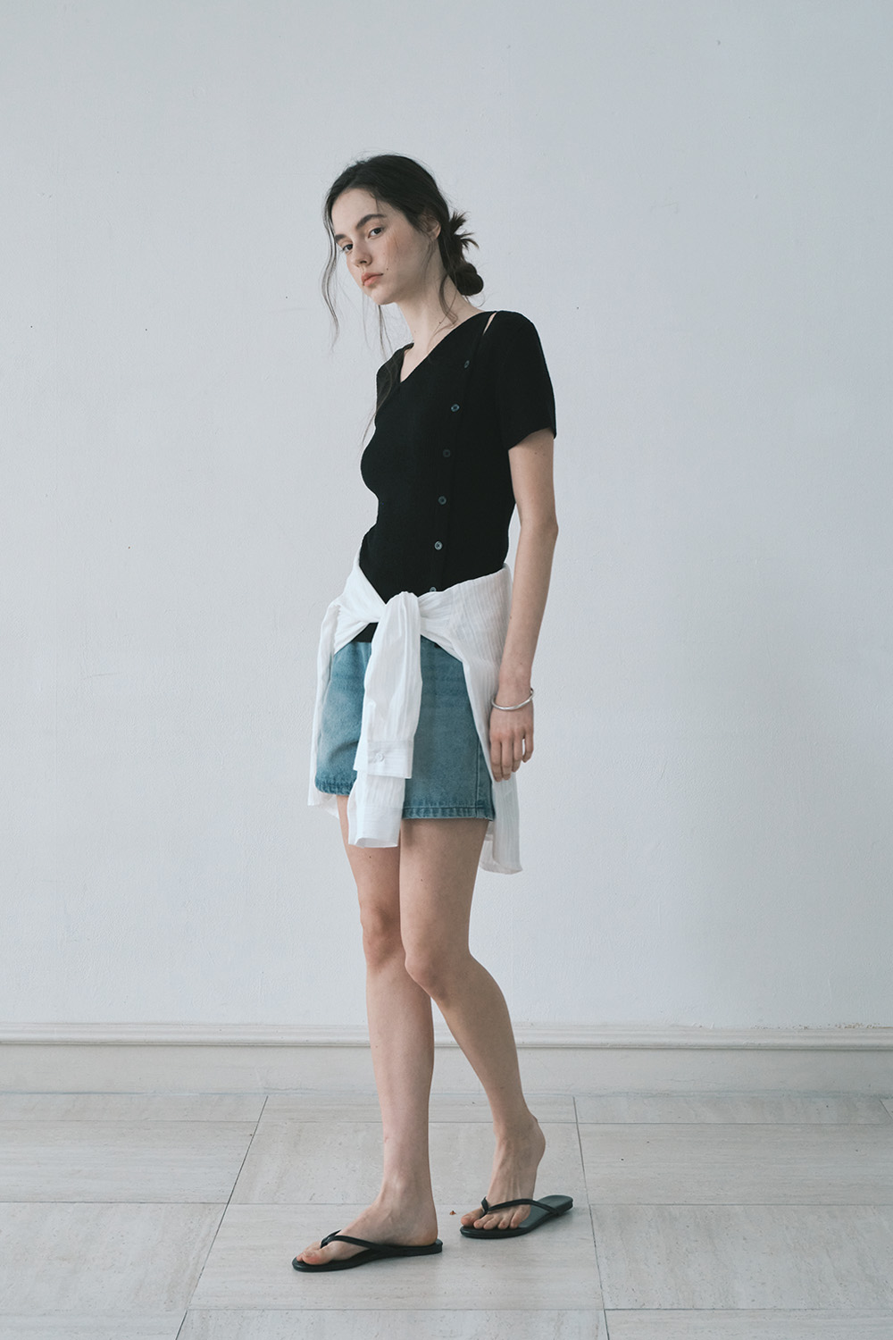 우먼즈 스퀘어 넥 니트 슬리브리스 탑 [블랙]