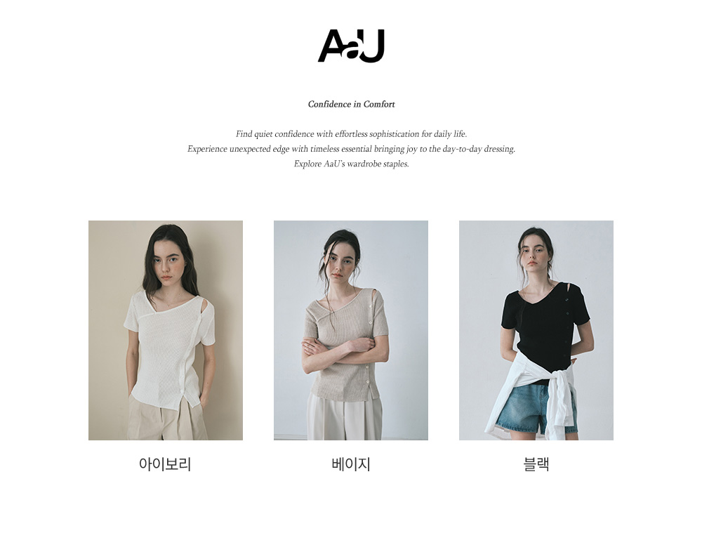 에이에이유(AAU)는 당신의 모든 것을 위한, 당신에게 집중하는 브랜드로 내 몸에 맞춘 듯한 편안함과 격식에 구애받지 않는 데일리 아이템으로 일상에 한 포인트의 멋을 더하는 브랜드입니다.