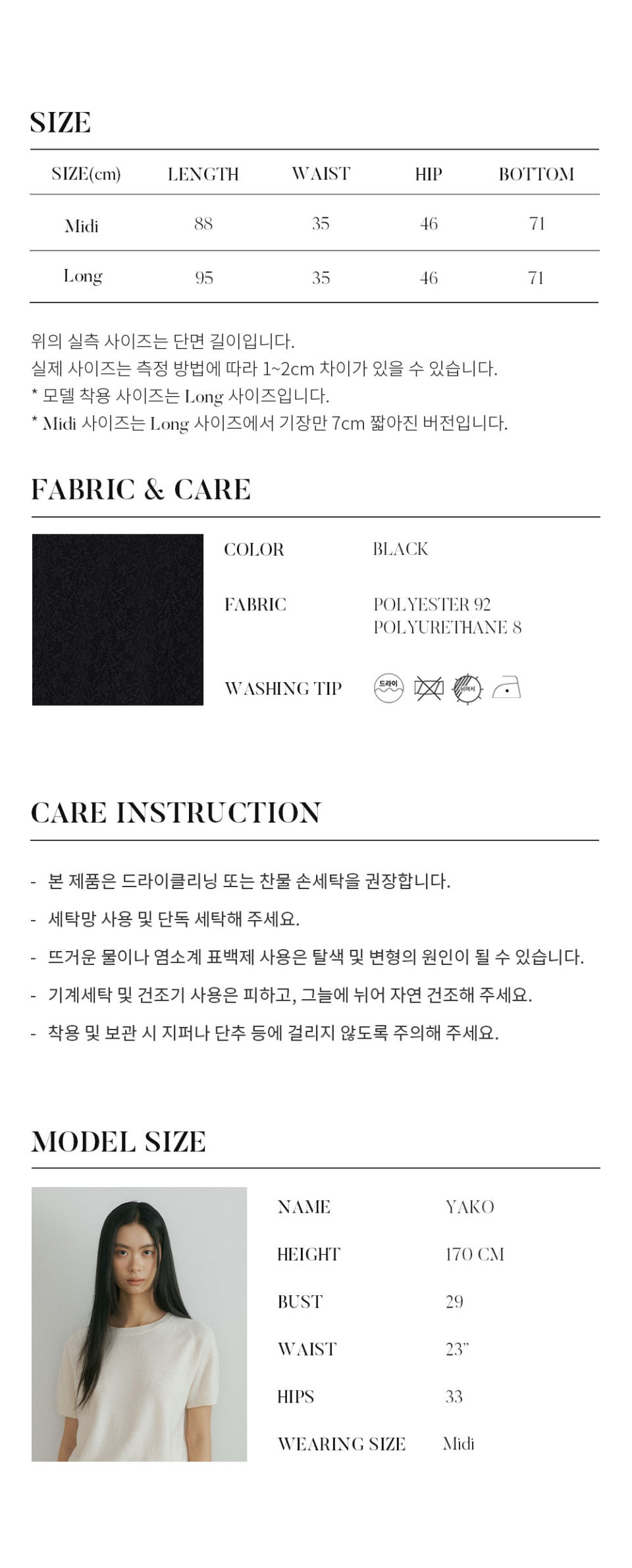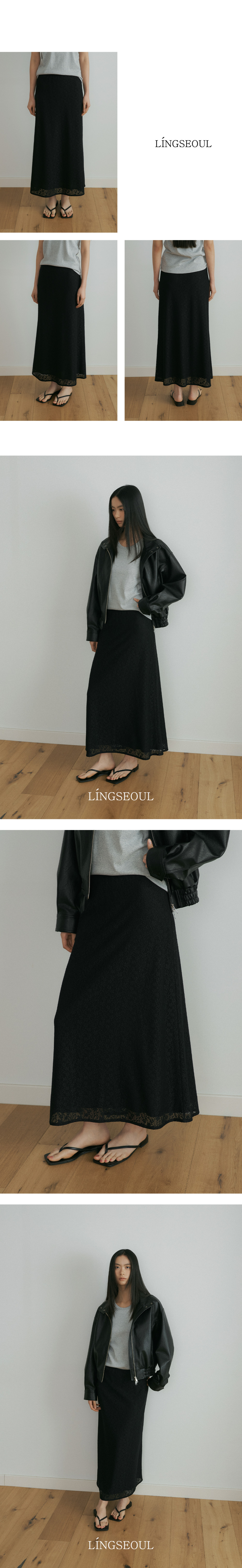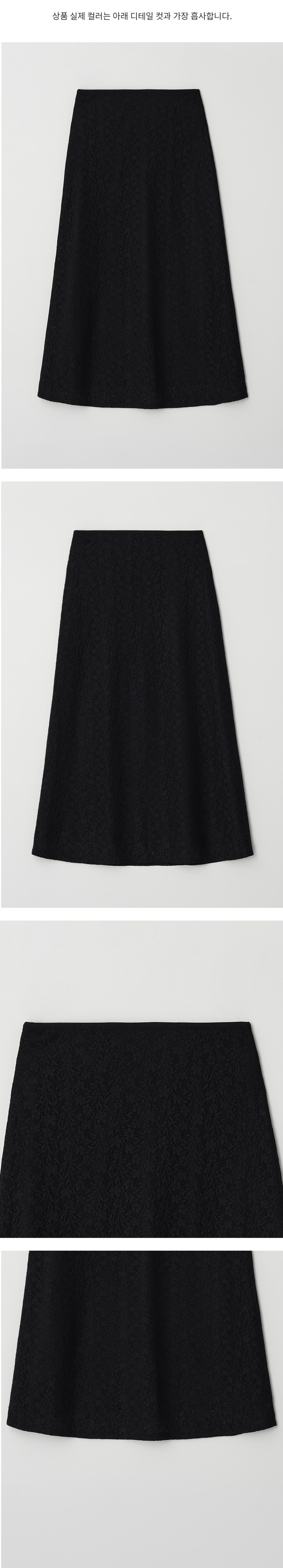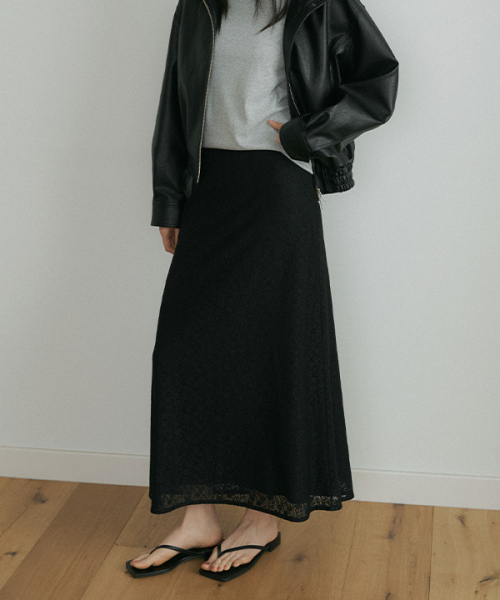 플로럴 패턴의 레이스 소재로 완성된 맥시 스커트입니다. 은은한 시스루 감이 느껴지는 레이스 텍스처가 여성스럽고 로맨틱한 무드를 더해주며, 허리 전체 밴딩과 신축성 있는 스판 소재를 사용해 장시간 착용에도 편안한 활동감을 선사합니다. 또한 안감을 덧대어 비침을 최소화해 안정감 있게 착용하실 수 있으며, 자연스럽게 떨어지는 맥시 기장이 체형을 커버해주어 데일리로 가볍게 매치하기 좋습니다. 티셔츠부터 블라우스까지 다양한 상의와 손쉽게 스타일링할 수 있는 활용도 높은 아이템입니다.