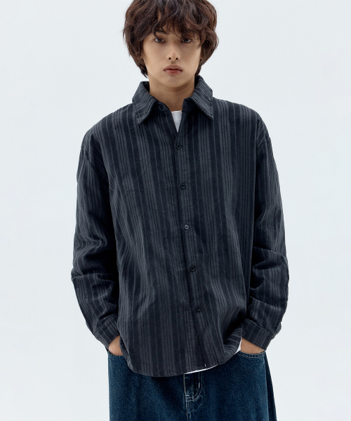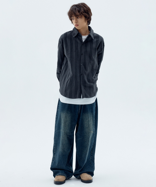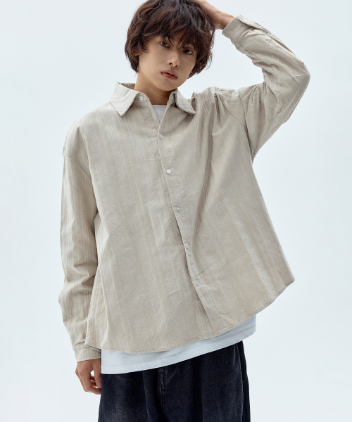 베이직 릴렉스 오버핏 코튼 스트라이프 시티 보이 긴팔 셔츠 _2COLOR