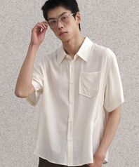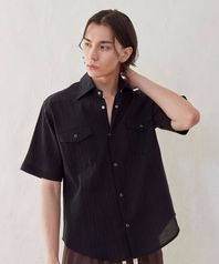웨이브 시어서커 쿨링 반팔 셔츠_아이보리