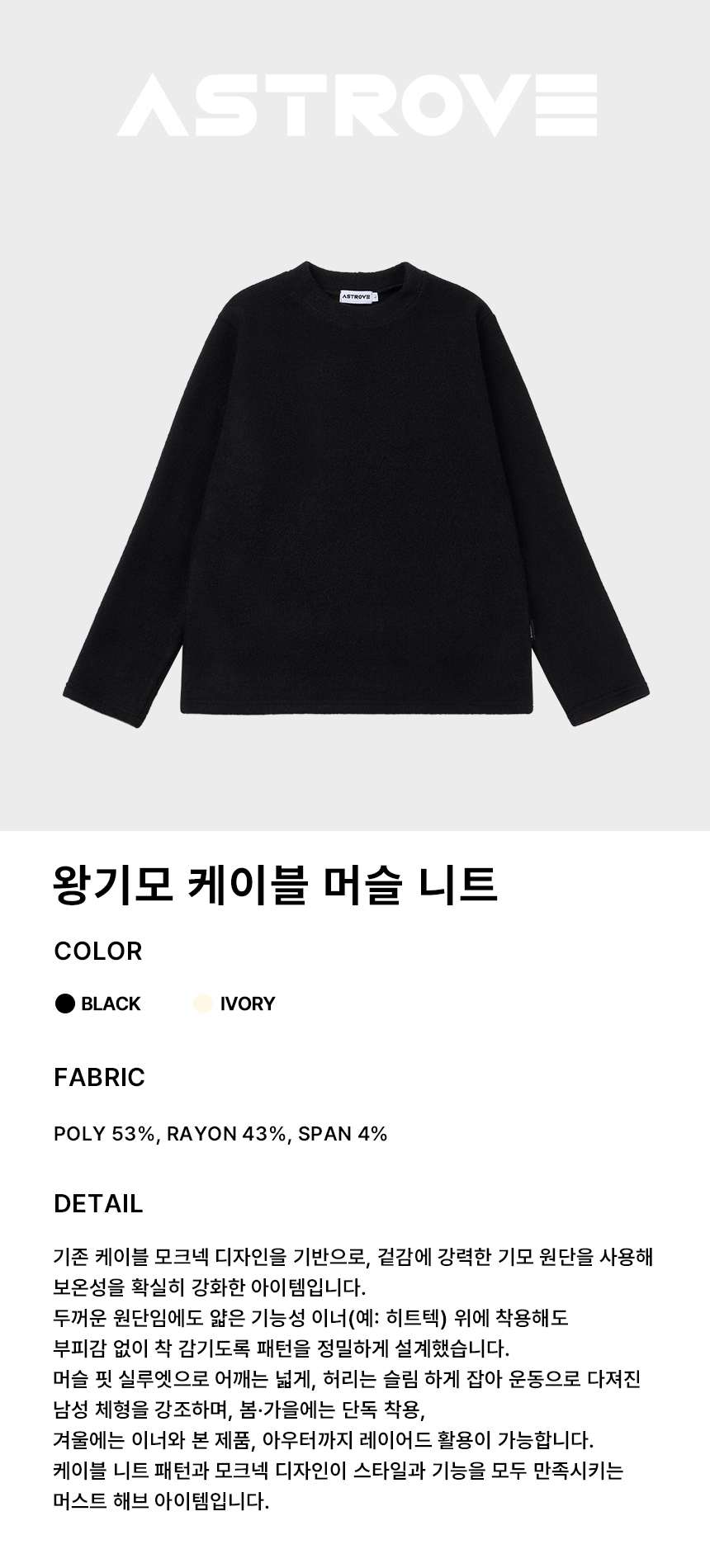 왕기모 케이블 머슬니트 블랙