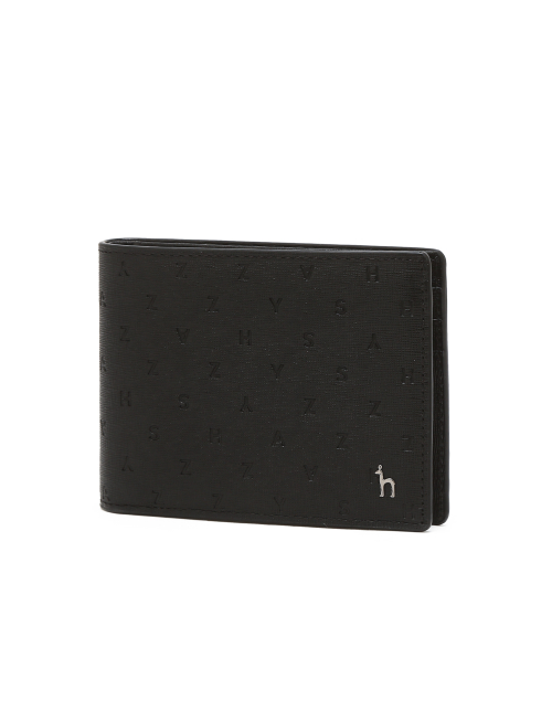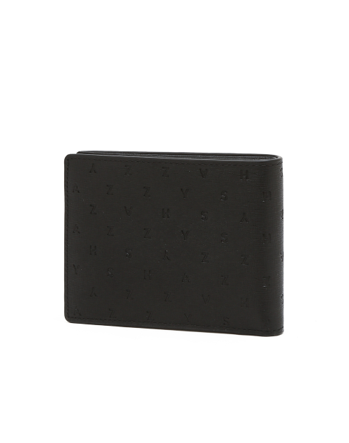 시크한 블랙 컬러의 음각 로고 패턴이 어우러져 세련된 외관을 보여주는 반지갑입니다.
