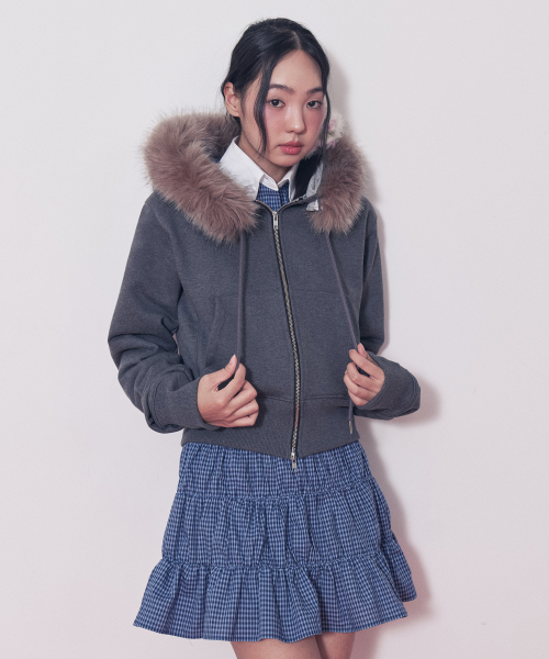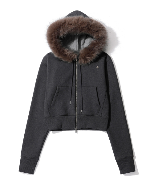 Eco-Friendly Fur Hooded Zip-Up_Dark Gray