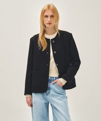 W TWEED ROUND NECK JACKET black