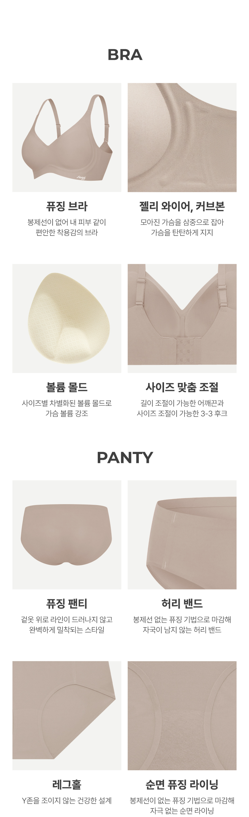 볼륨핏 후크형 심리스 노와이어 브라팬티세트