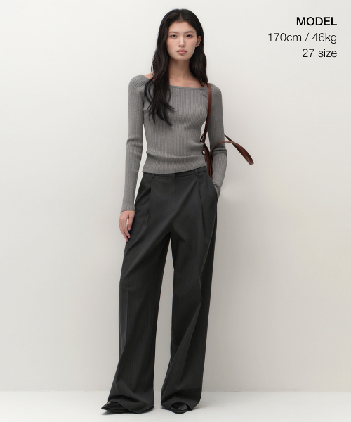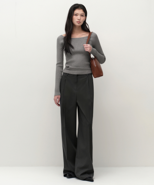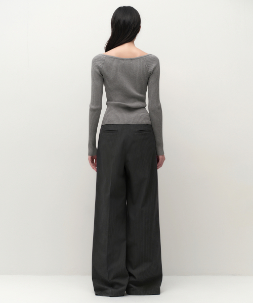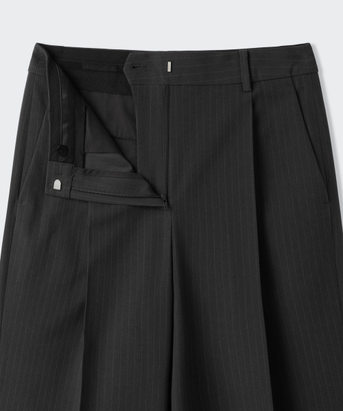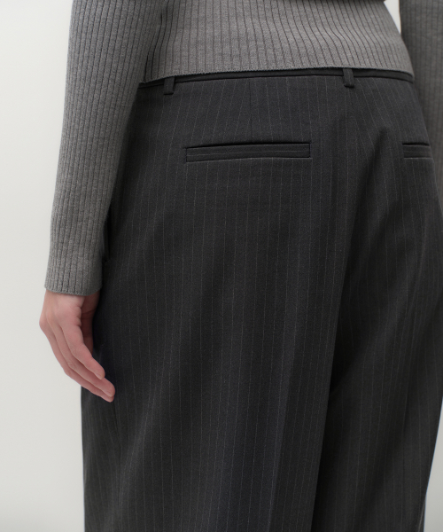 우먼즈 핀 스트라이프 딥 턱 와이드 슬랙스 [그레이]